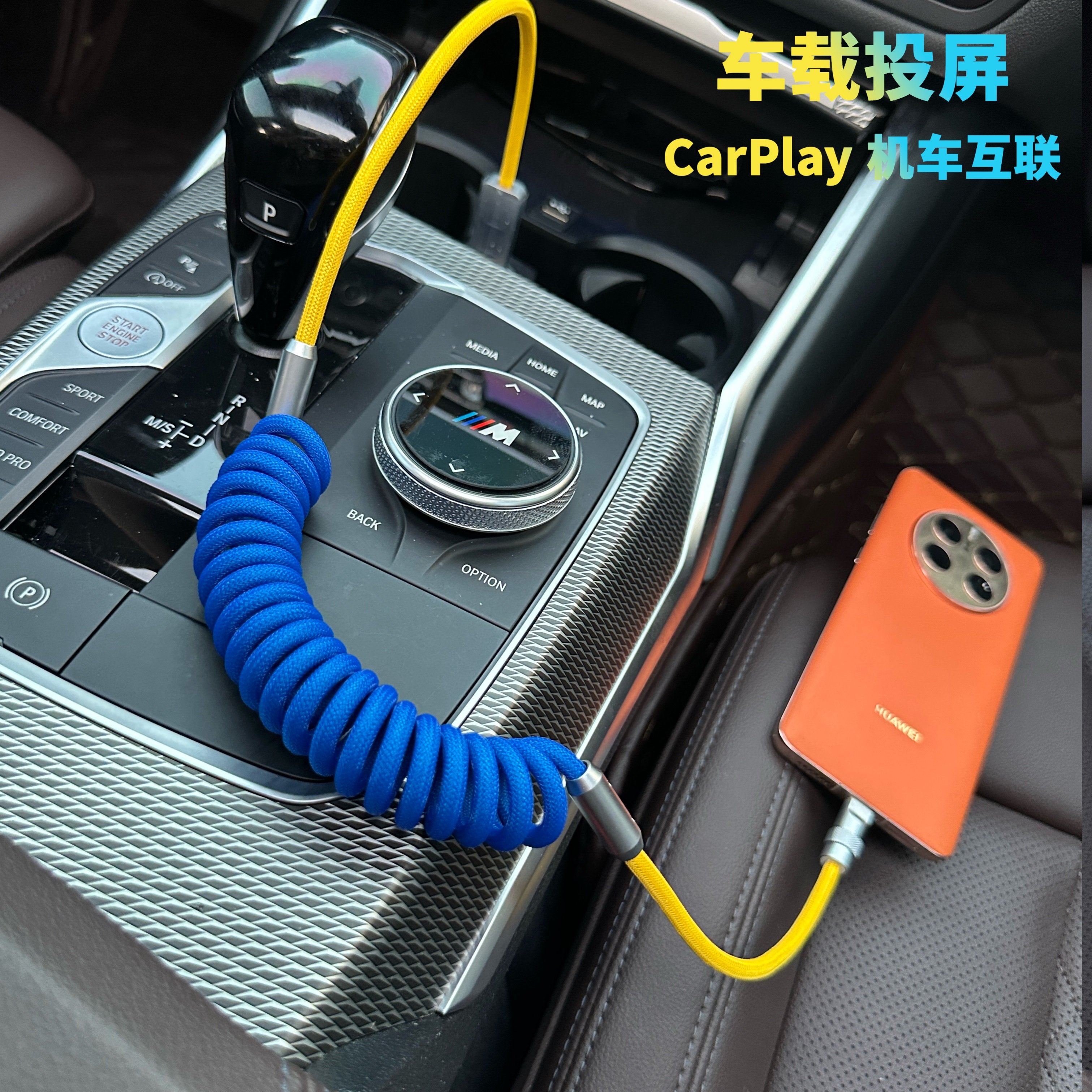倍思车载carplay弹簧伸缩数据线适用苹果17华为小米充电线iPhone16pro手机15汽车摩托车usb转typec快充Hicar