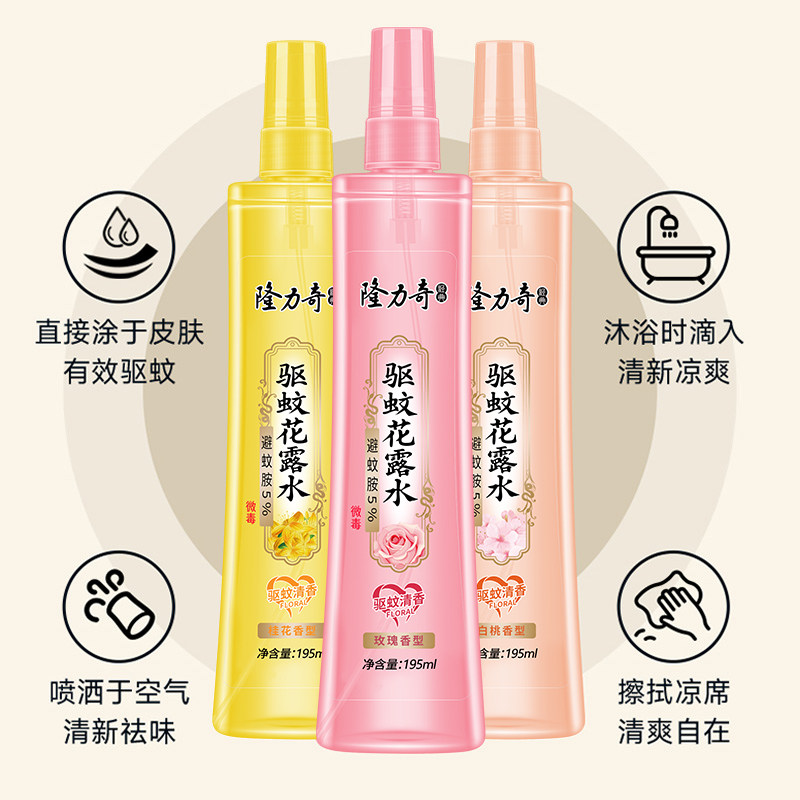 隆力奇驱蚊花露水花香祛味植物配方持久留香清新195mL成人防蚊虫