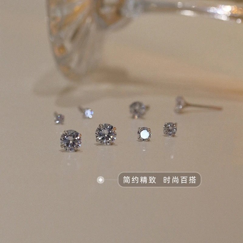 999纯银耳钉女养耳洞耳骨钉小众高级感锆石耳蜗钉水钻耳环银耳饰