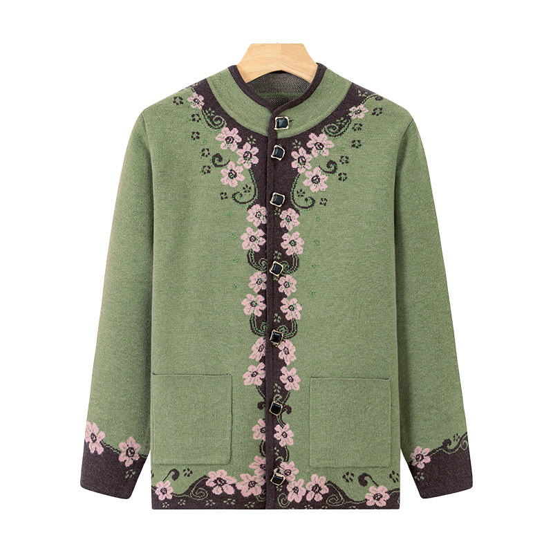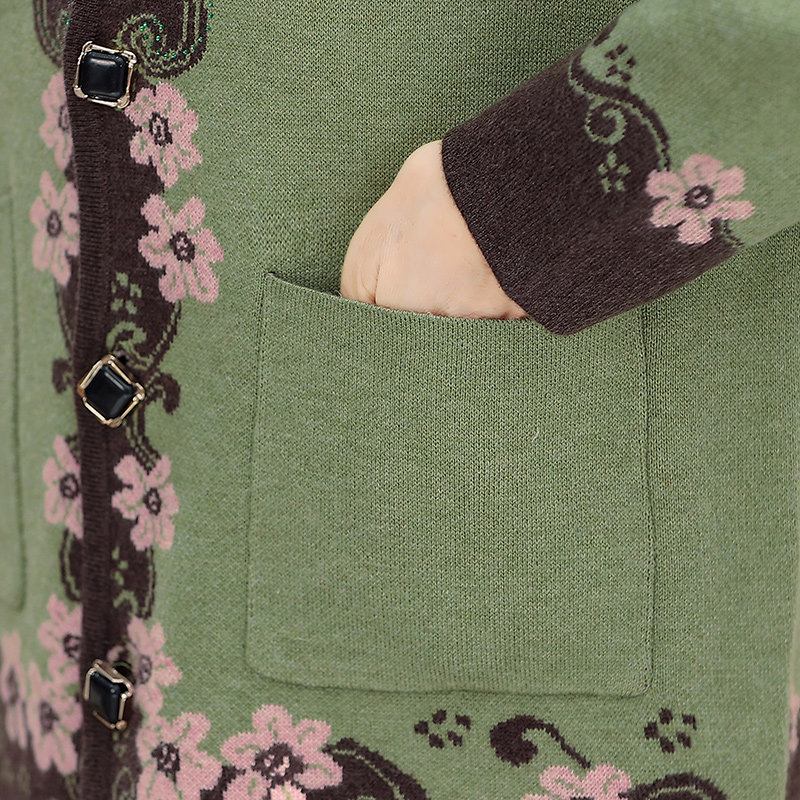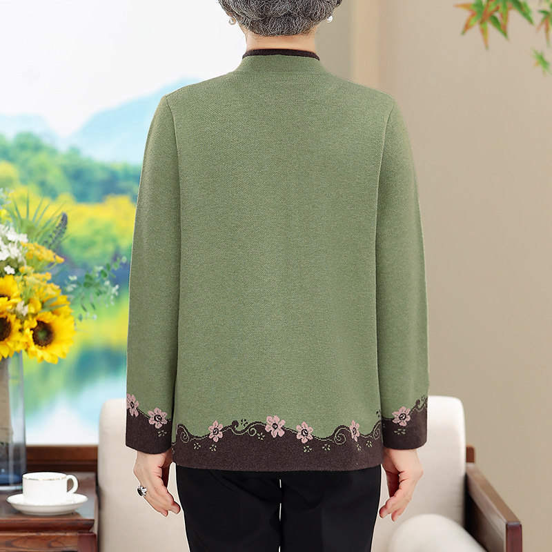 2025新款碎花针织衫上衣中老年女装春秋翻领打底衫妈妈秋装薄毛衣