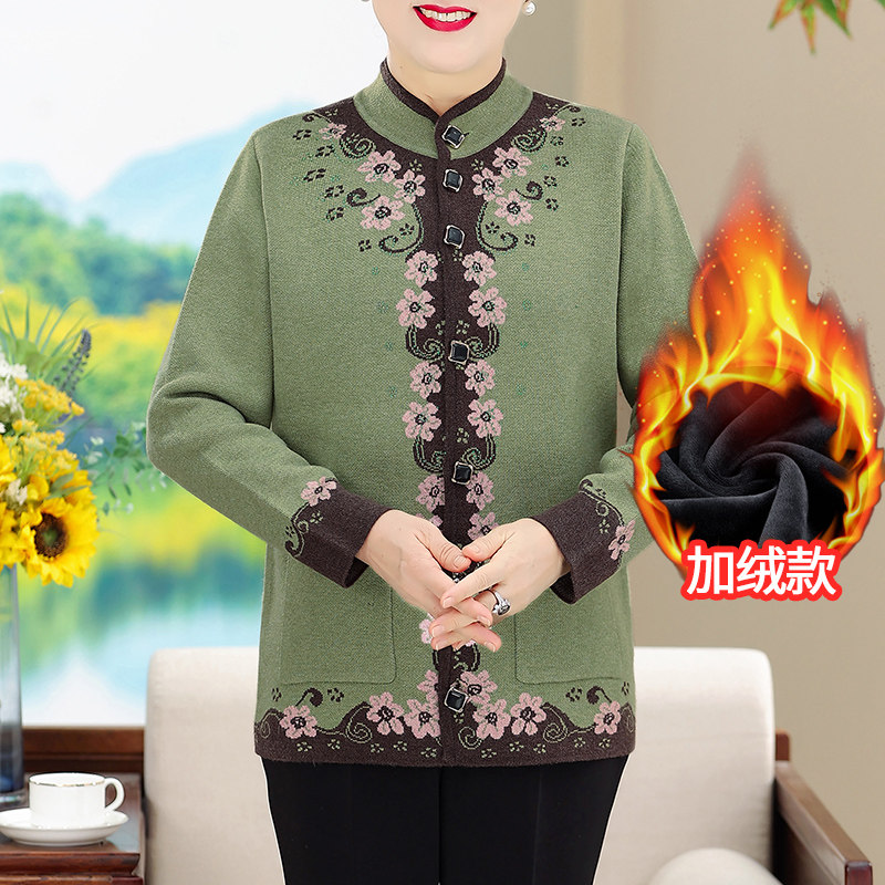 妈妈秋冬装一体绒毛衣洋气打底衫中老年人女加绒加厚保暖上衣套装