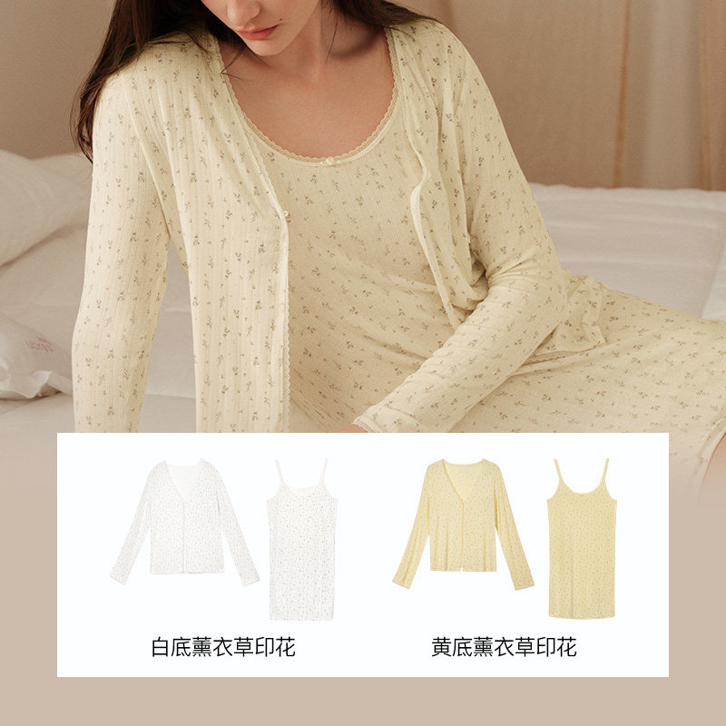 浪莎睡衣女春秋款纯棉长袖2025年新款秋冬大码薄款宽松开衫家居服