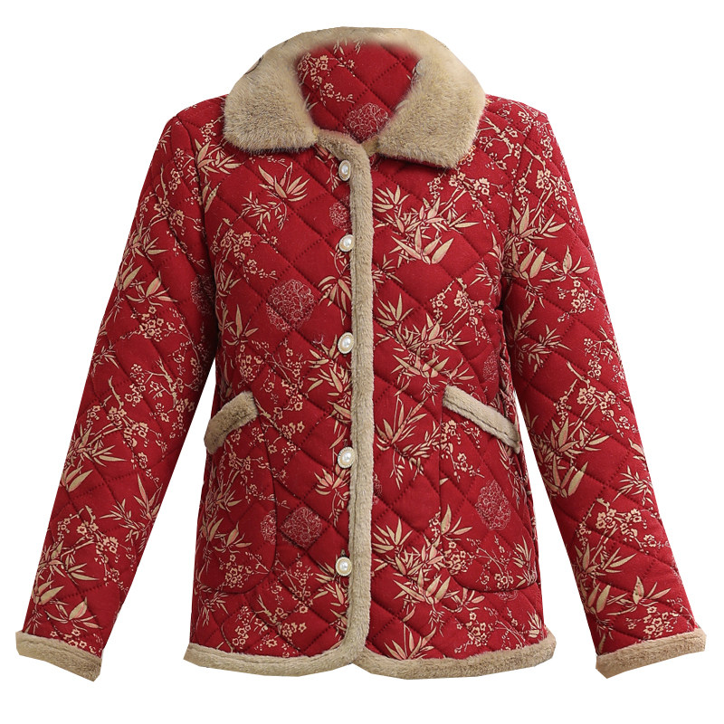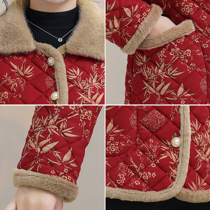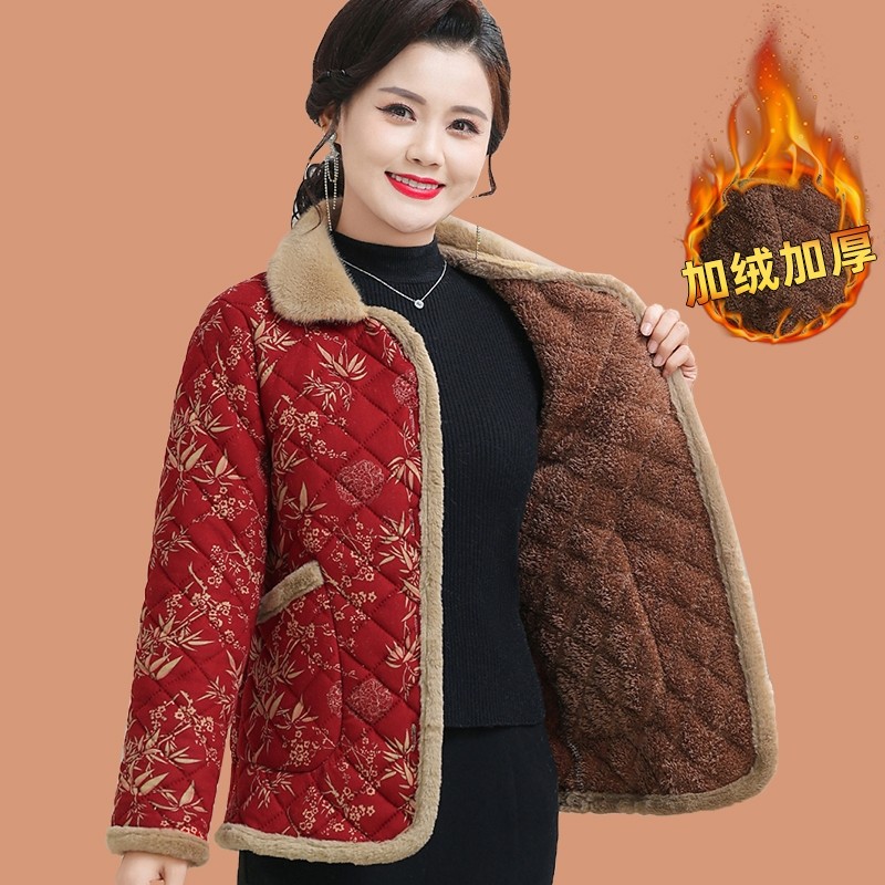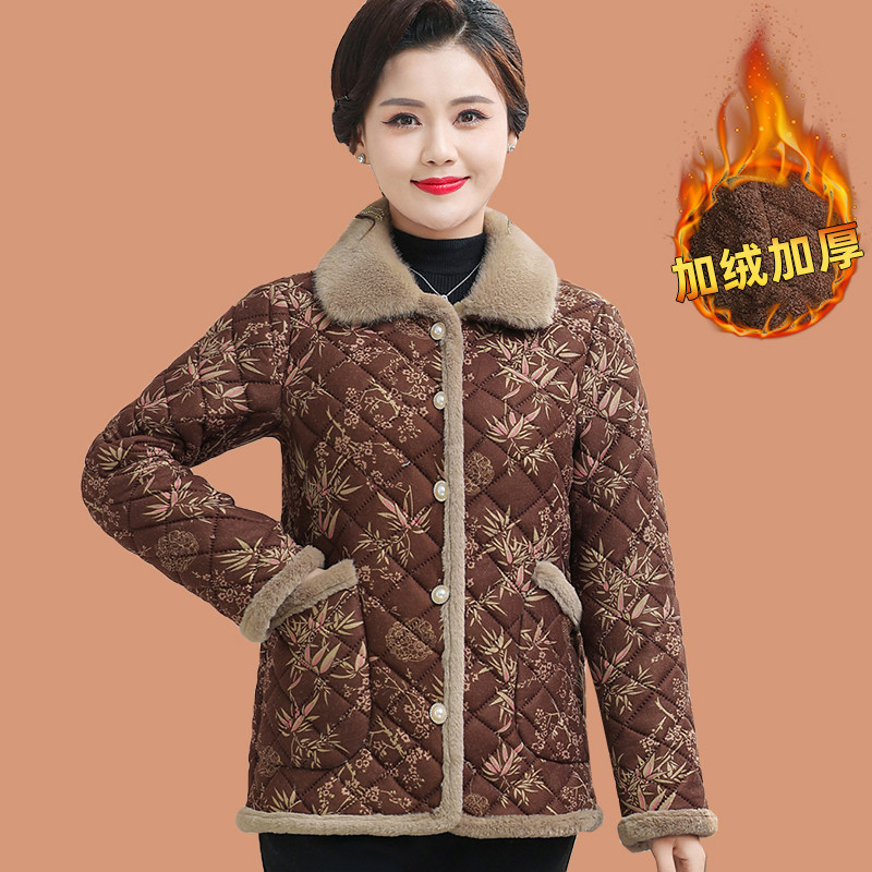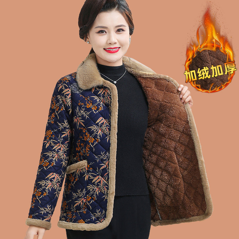 中年妈妈秋冬装加绒加厚小棉袄新款中老年女洋气碎花棉衣外套实用