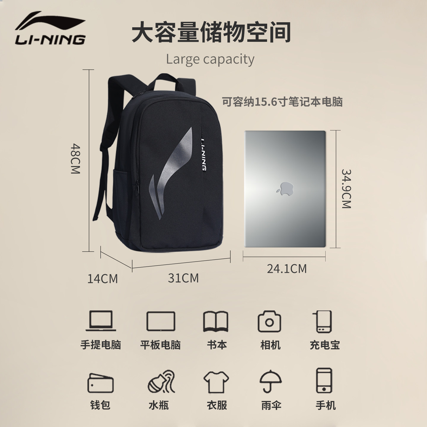 李宁双肩包大容量初中生高中生书包大学生运动户外旅行电脑背包男