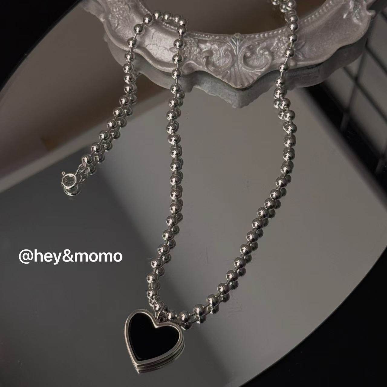 5.12韩国东大门hey银饰串珠爱心吊坠项链