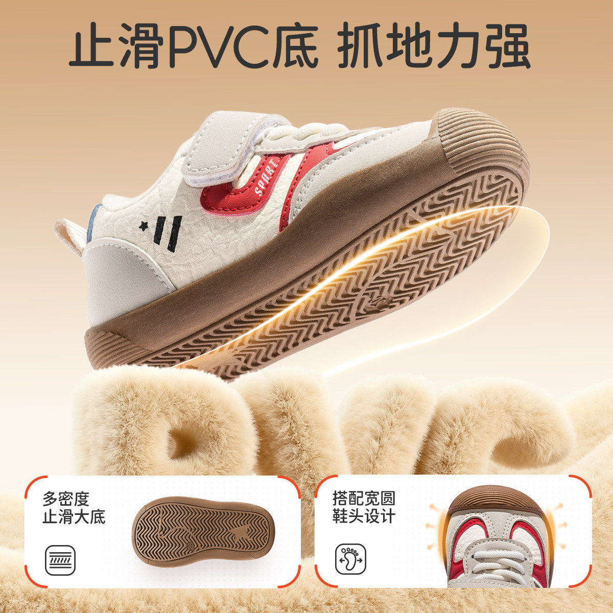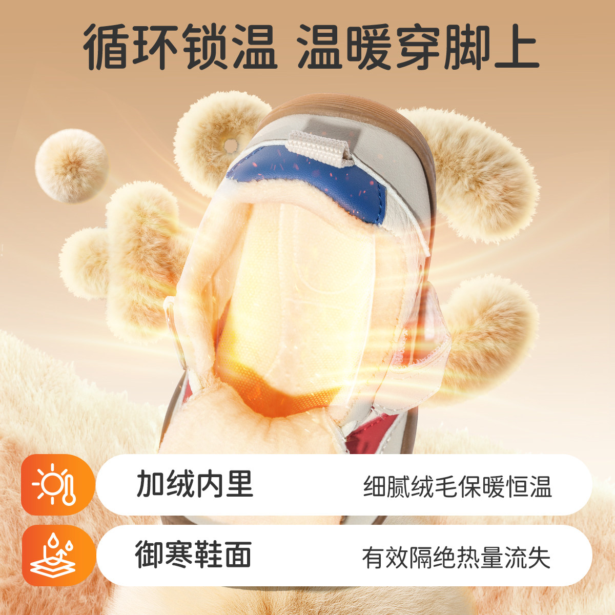 婧麒儿童鞋子男童2025新款冬季女宝宝加绒保暖学步鞋防滑机能棉鞋