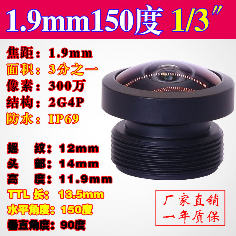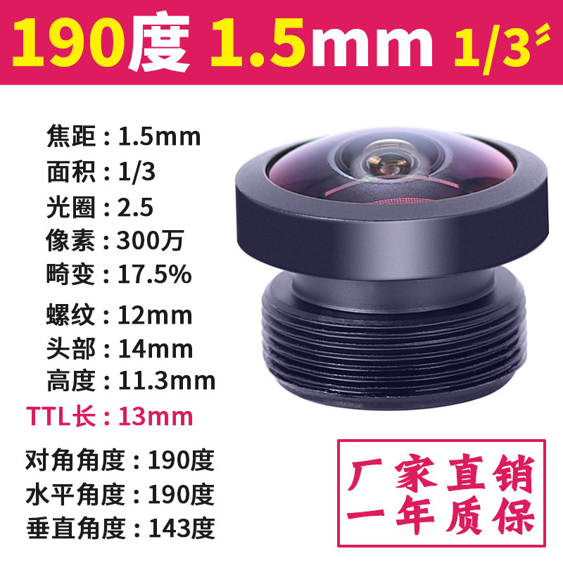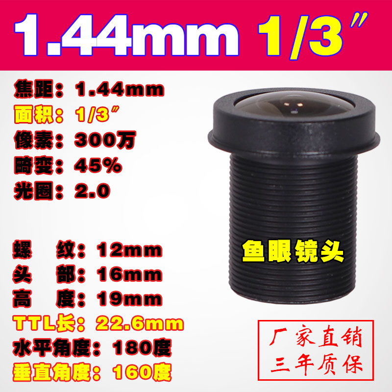 300万高清红外窄带3分之一940全景鱼眼大广角工业相机防水M12镜头