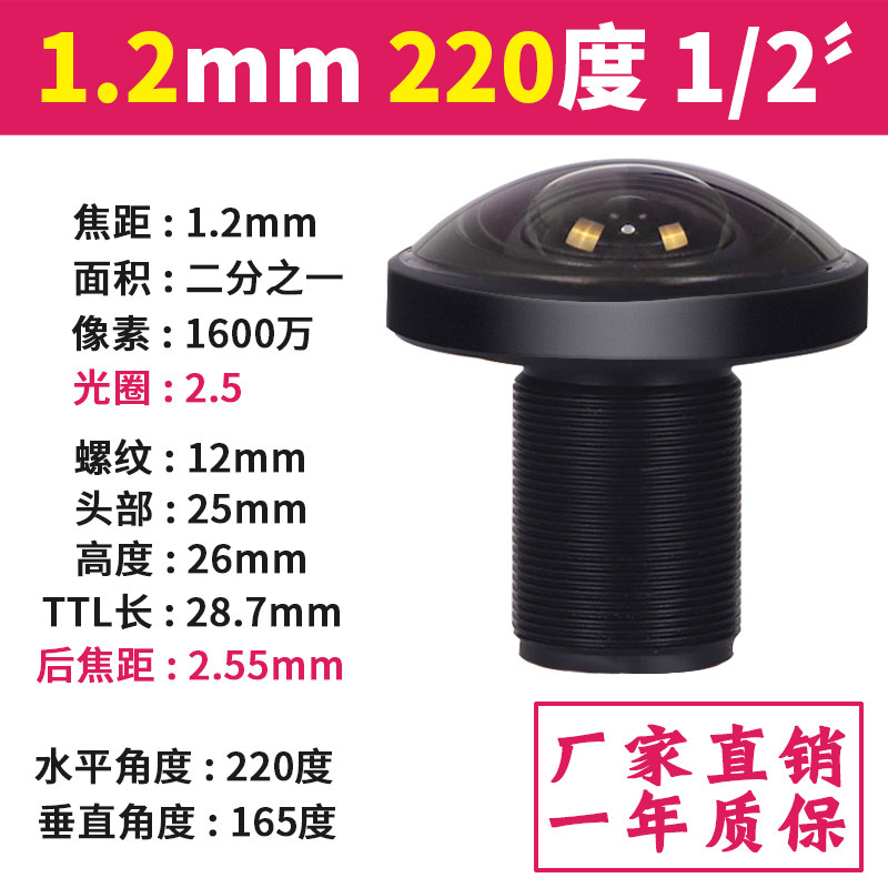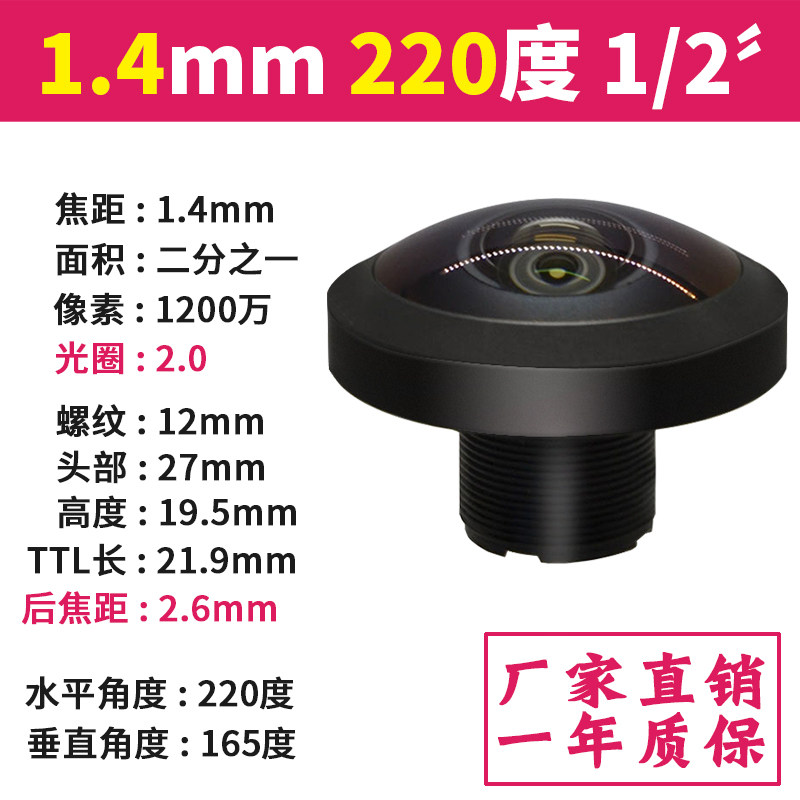 1200万高清红外窄带2分之一全景鱼眼1.4mm工业相机240度M12镜头