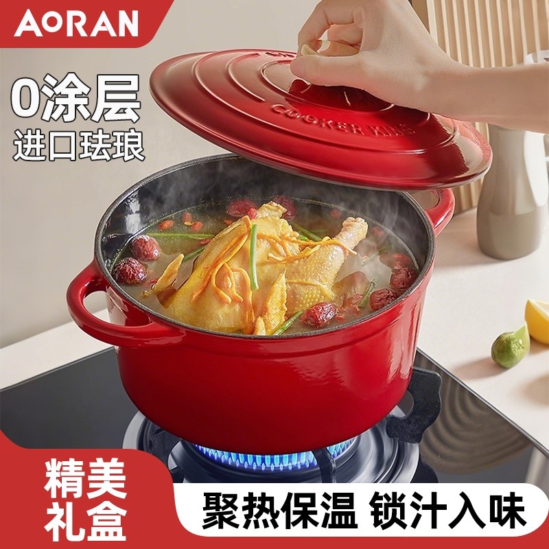 奥然珐琅锅铸铁锅家用礼物炖锅炖盅砂锅汤锅不粘锅煮锅电磁炉炖煮