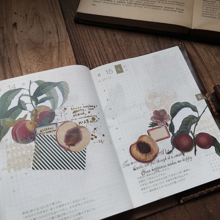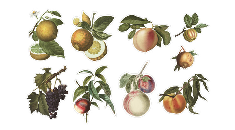 欧美风vintage TN手帐素材复古 植物大桃子葡萄果实 硫酸纸贴纸
