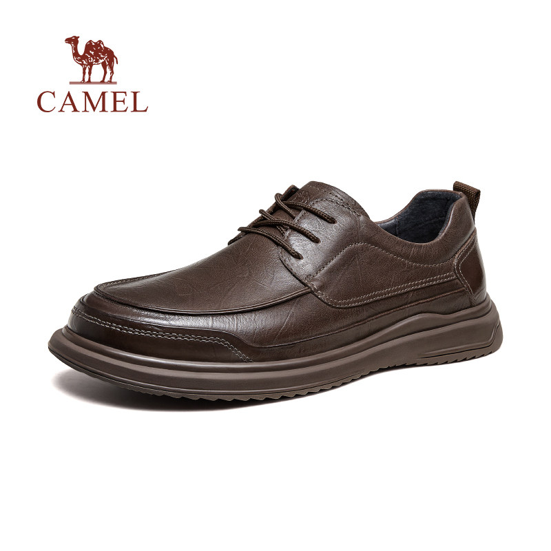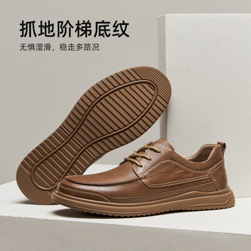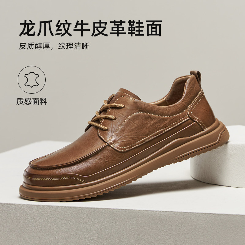骆驼男鞋2025春季新款龙爪纹真皮增高软弹舒适经典商务休闲皮鞋