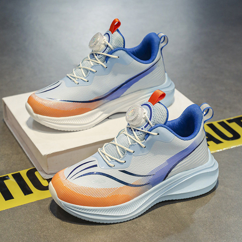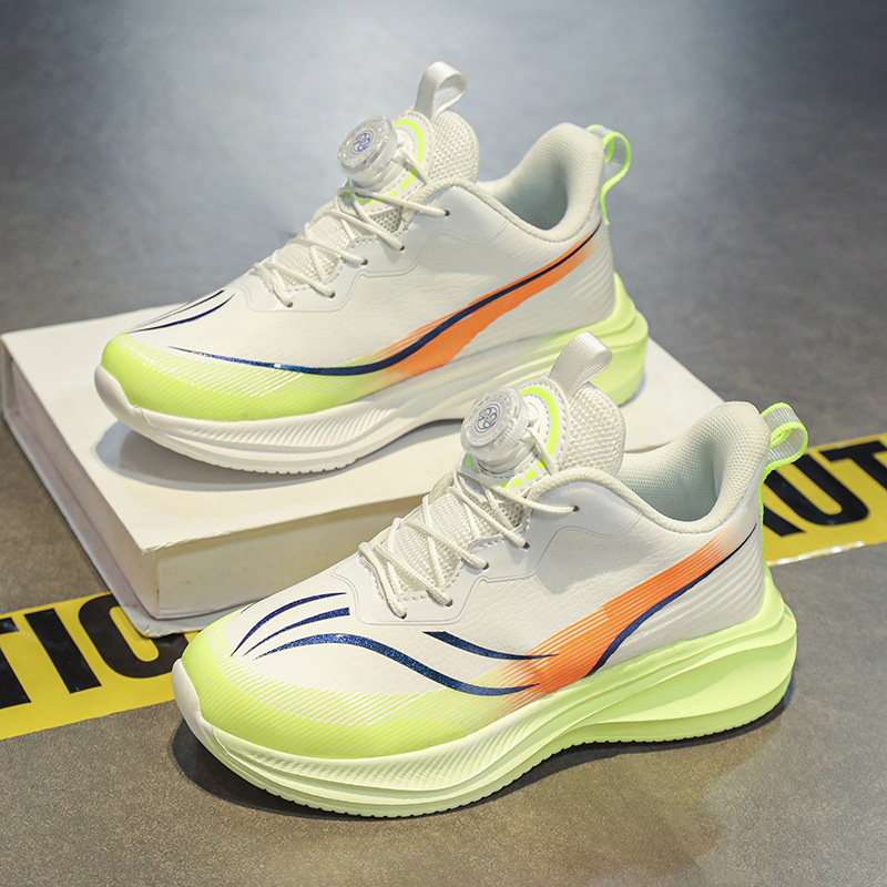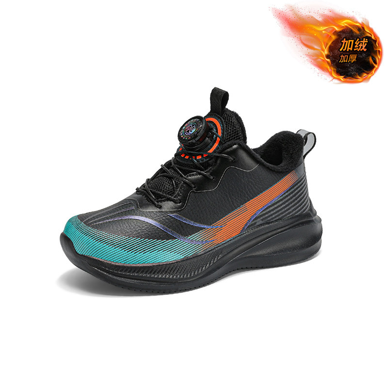 男童鞋秋冬季跑步鞋儿童旋转扣轻便中大童老爹鞋加绒皮面科技鞋带
