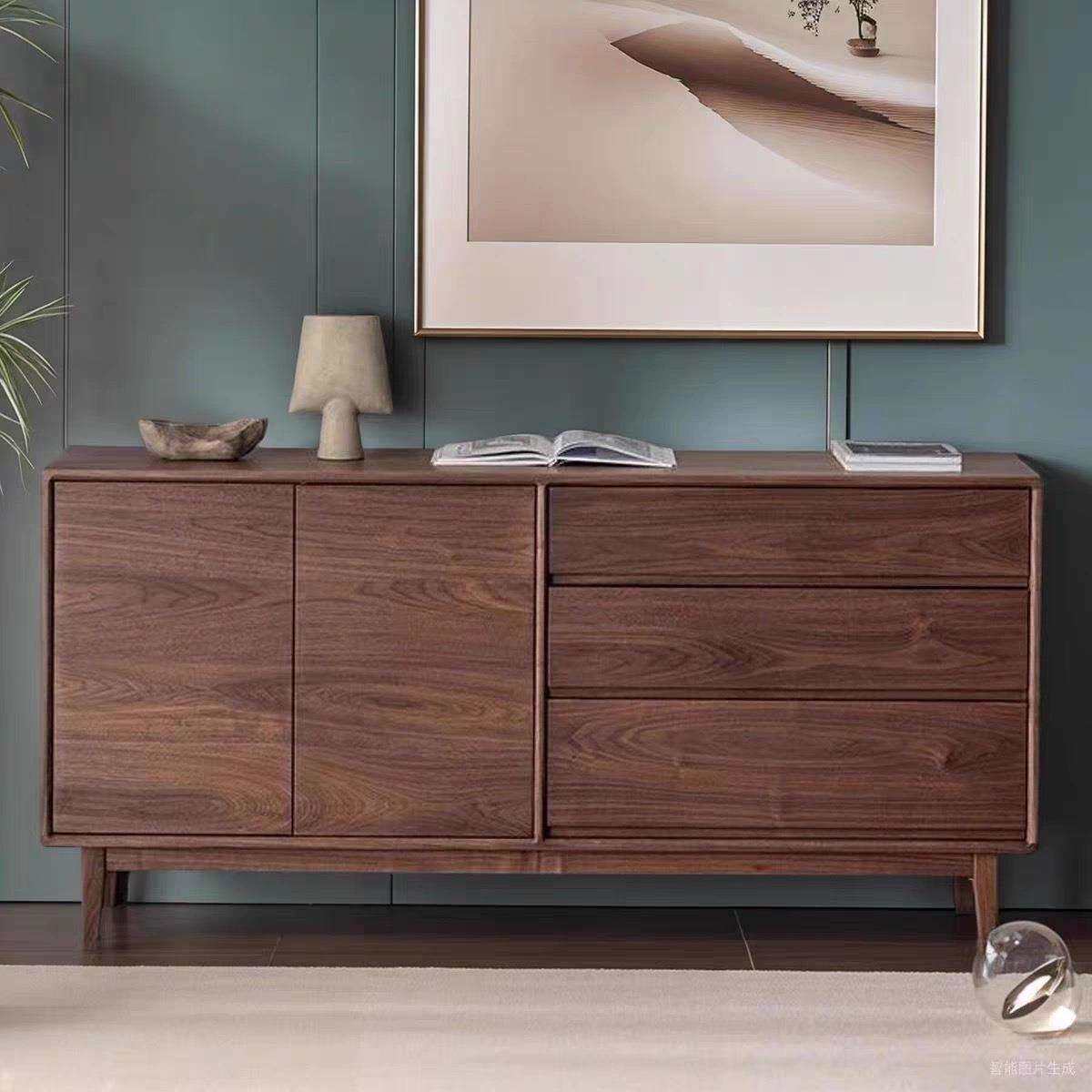 北美黑胡桃木斗柜实木三斗柜北欧餐边柜简约客厅玄关储物柜卧室