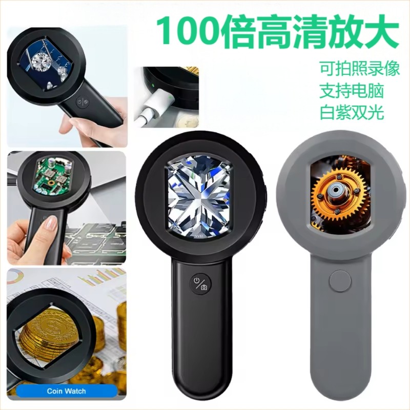 手持电子放大镜100倍高清烟酒珠宝显微镜鉴定正品专用高倍古董钱币邮票印刷紫砂壶沉香奢侈品手串腰码数码
