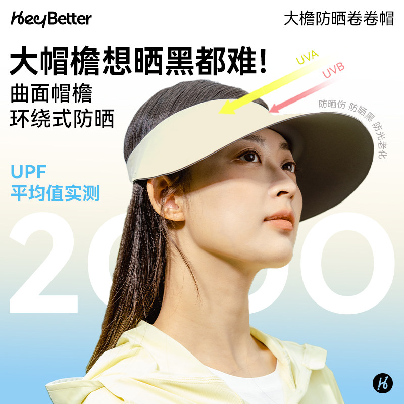 HeyBetter防晒帽女夏大帽檐太阳帽防紫外线折叠空顶成人遮阳帽子