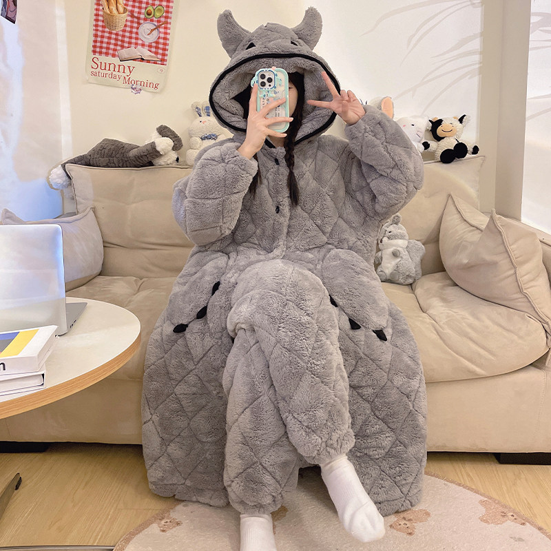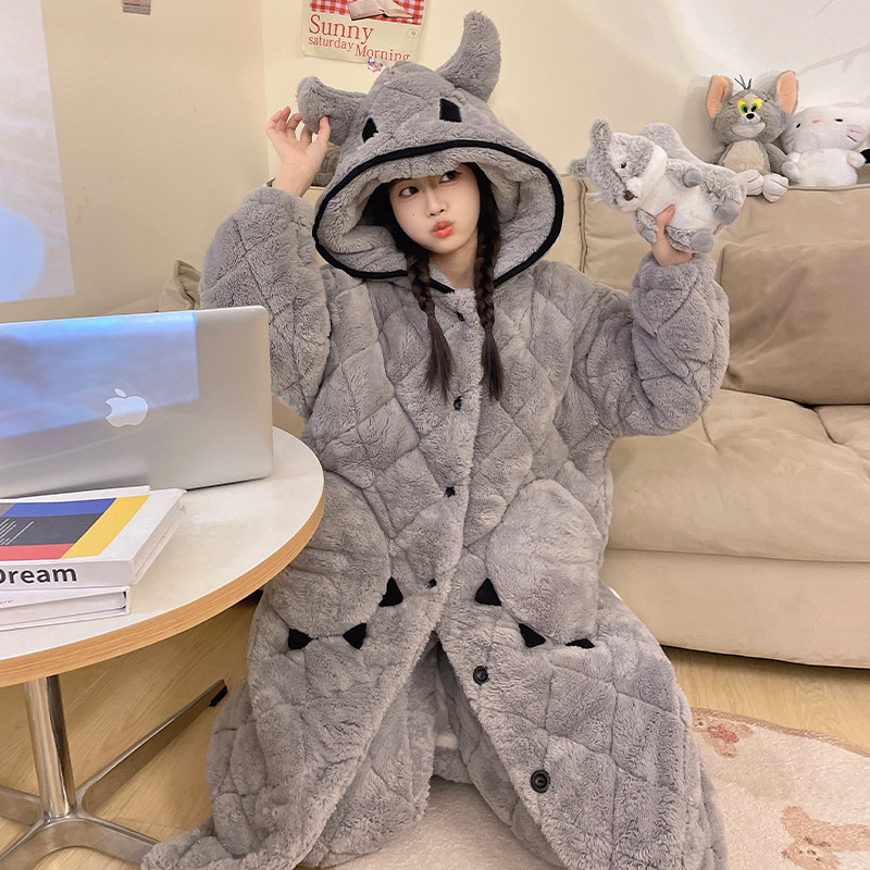 睡衣秋冬款女珊瑚绒三层夹棉睡袍2025新款冬天加厚加绒保暖家居服