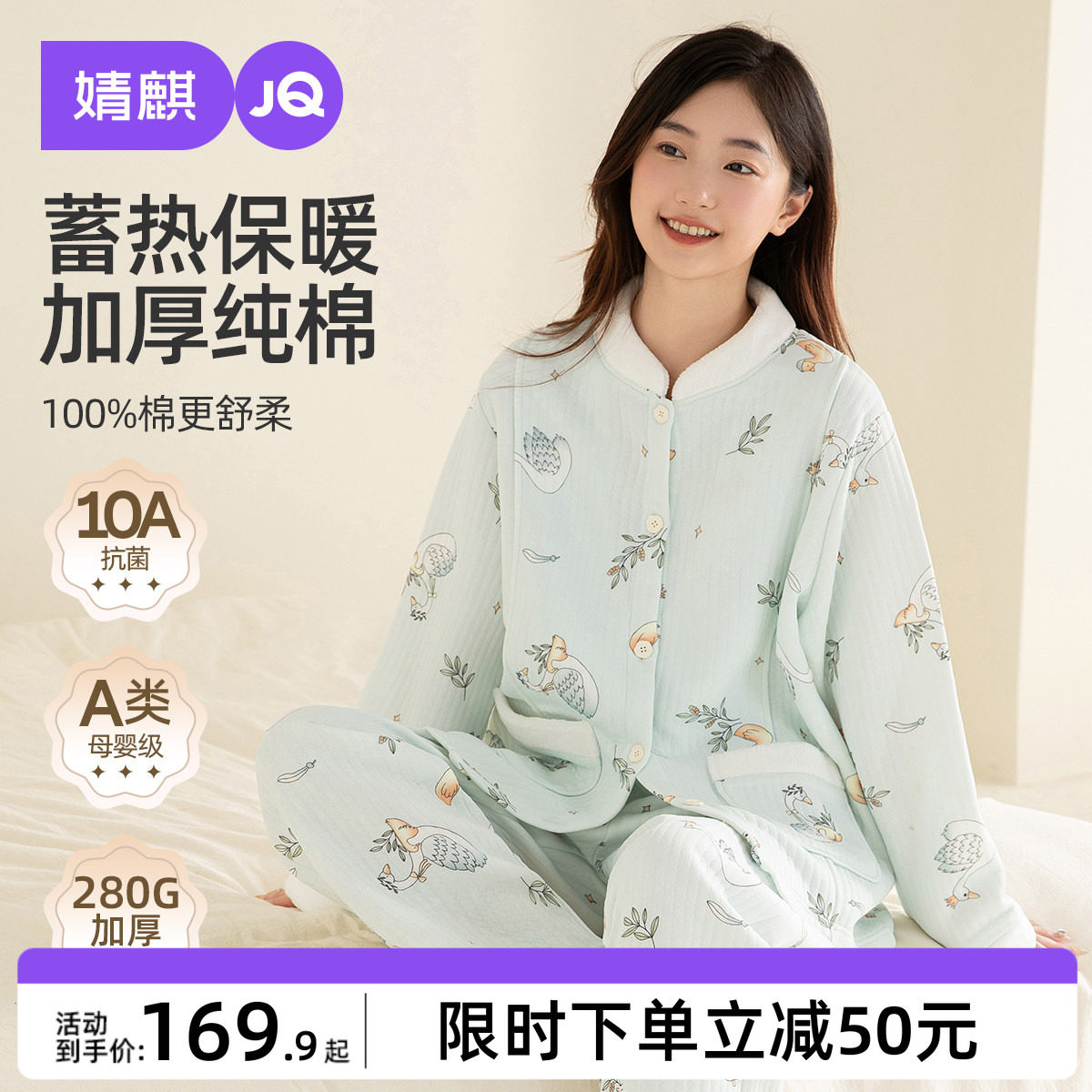 婧麒月子服秋冬空气棉孕妇睡衣纯棉100%全棉产后哺乳家居服套装女