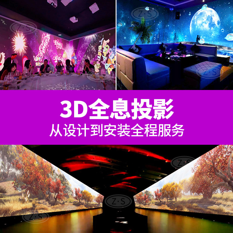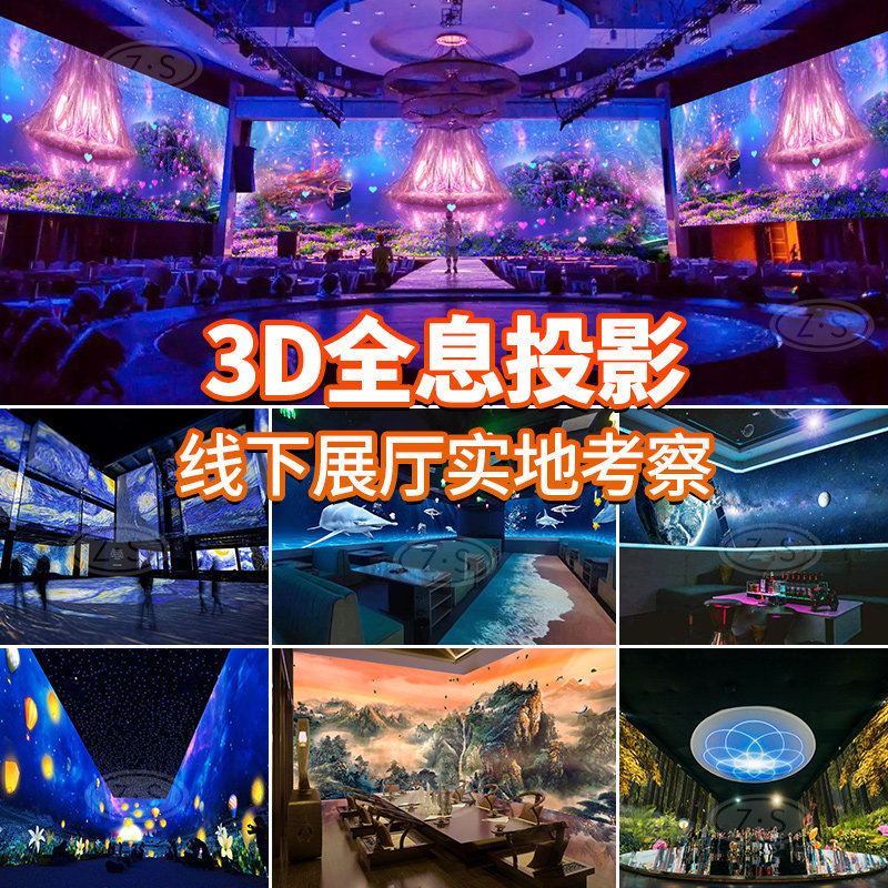裸眼3D全息沉浸式投影餐厅海浪 宴会厅婚礼现场 展厅商场墙面地面互动投影超清激光投影免费策划上门安装调试