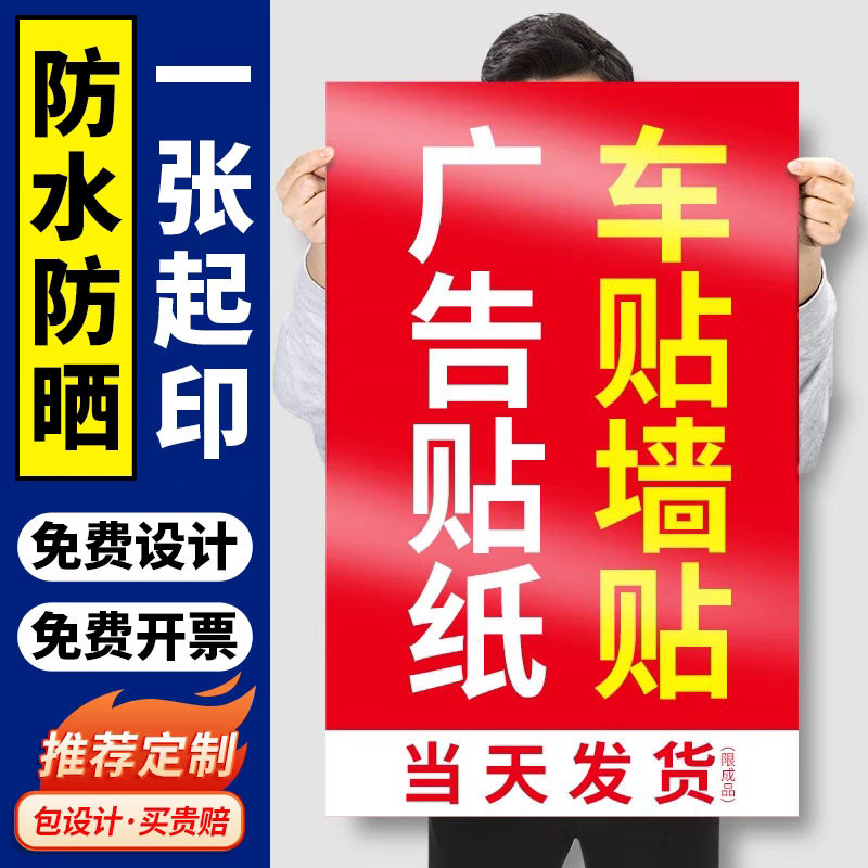 pvc不干胶防水防晒户外广告墙贴印刷小背胶车贴写真海报贴纸工厂