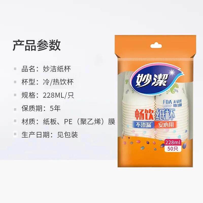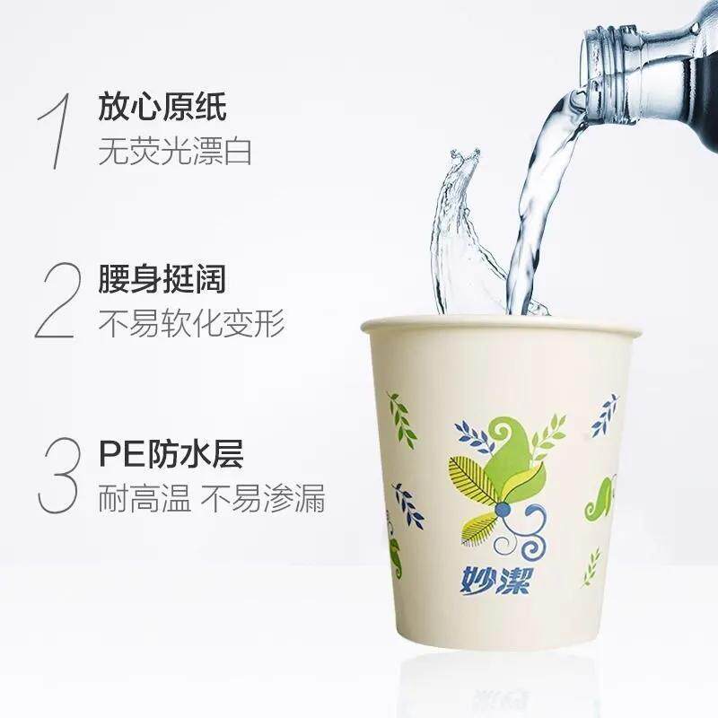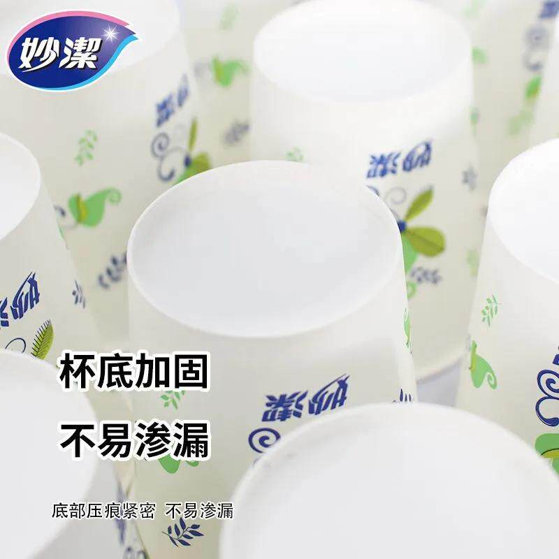 妙洁一次性纸杯加厚食品级耐高温家用办公室杯子实惠装228ml