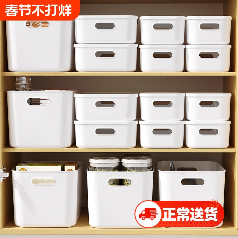 桌面收纳盒家用长方形化妆品杂物零食整理箱带盖储物筐塑料置物盒