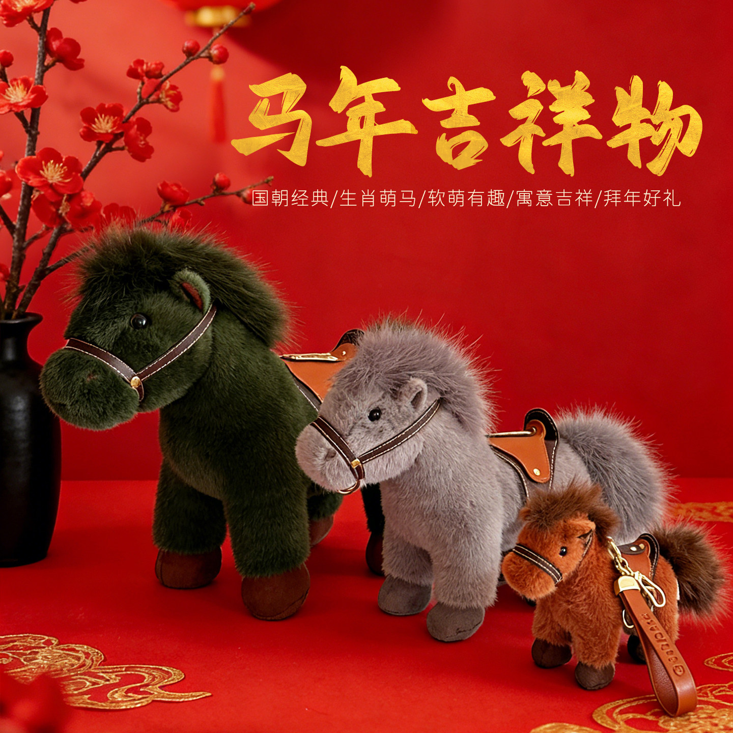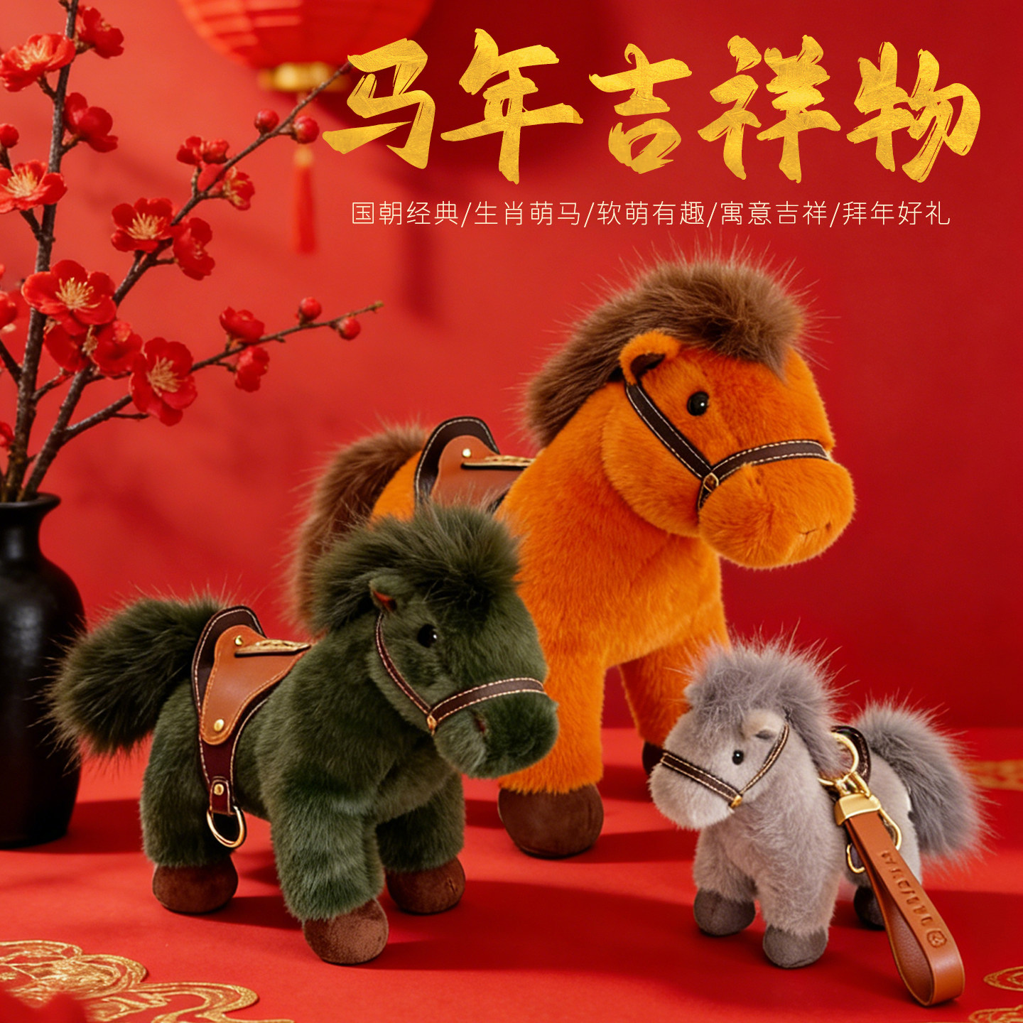 2026马年吉祥物公仔小马毛绒玩具可爱新年布娃娃公司礼品马上有钱