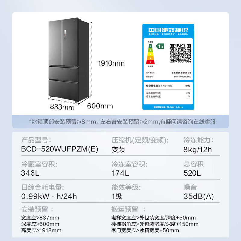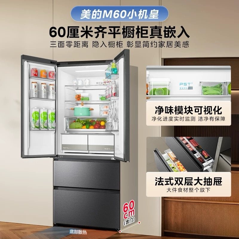 【全国补贴】美的小机皇520冰箱以旧换新超薄M60法式零嵌风冷无霜