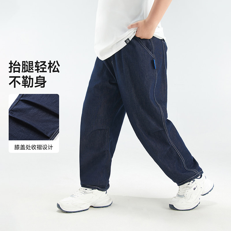 宽褶耐磨牛仔裤小猪托尼胖男夏装薄牛仔童中大童宽松加肥加大裤子