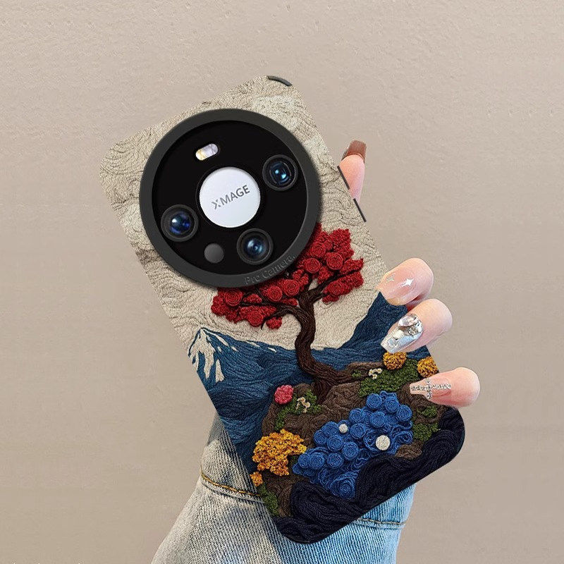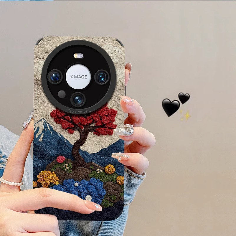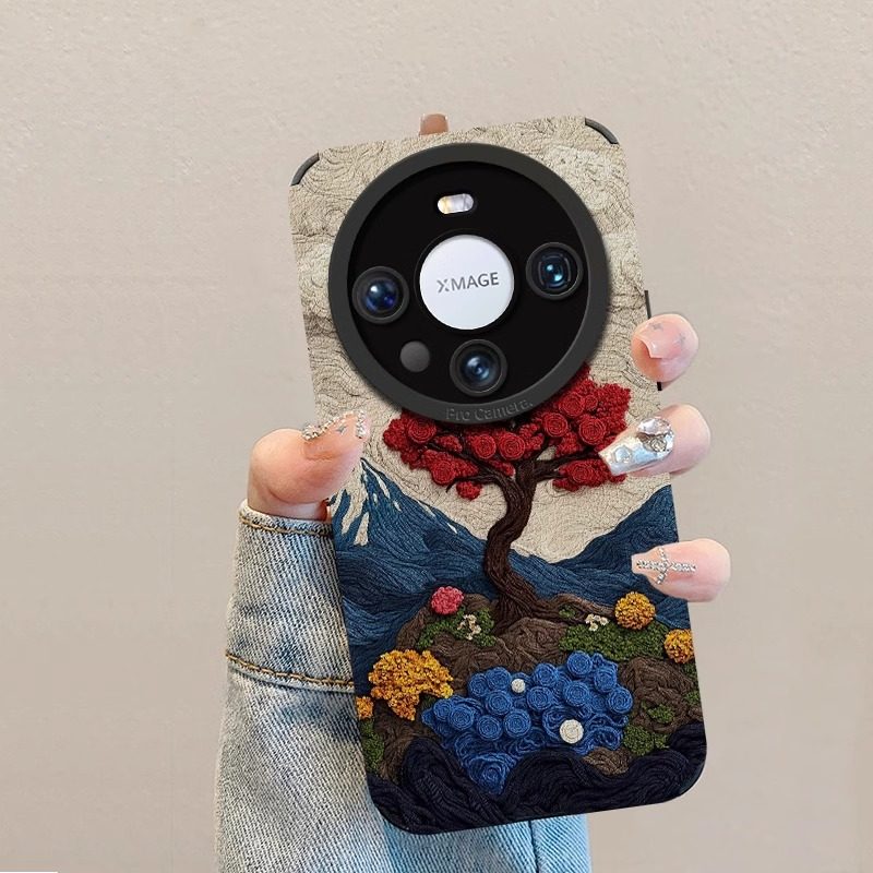 复古山川玫瑰适用华为mate80pro手机壳mate60女mate50小羊皮p80pro新款70防摔Magic7高级x50i全包硅胶软壳40