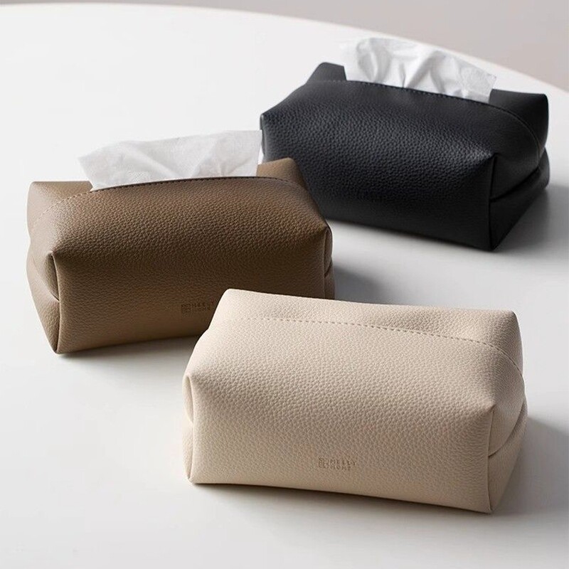 原创马鞍皮车载纸巾盒奶油风高档餐巾纸抽盒扶手箱椅背挂式抽纸套