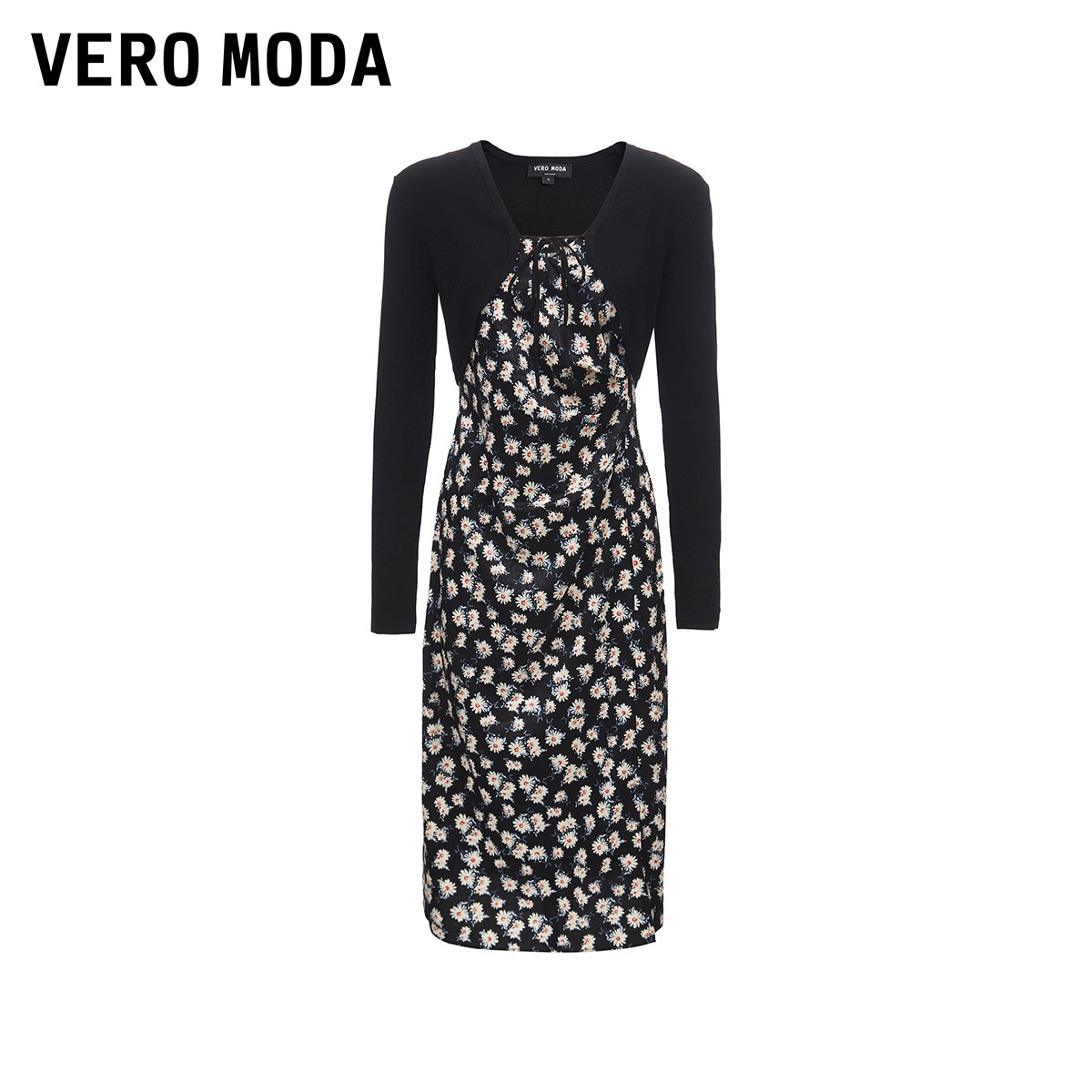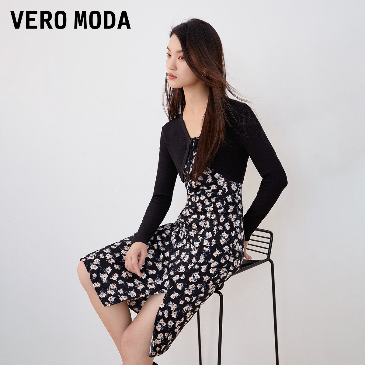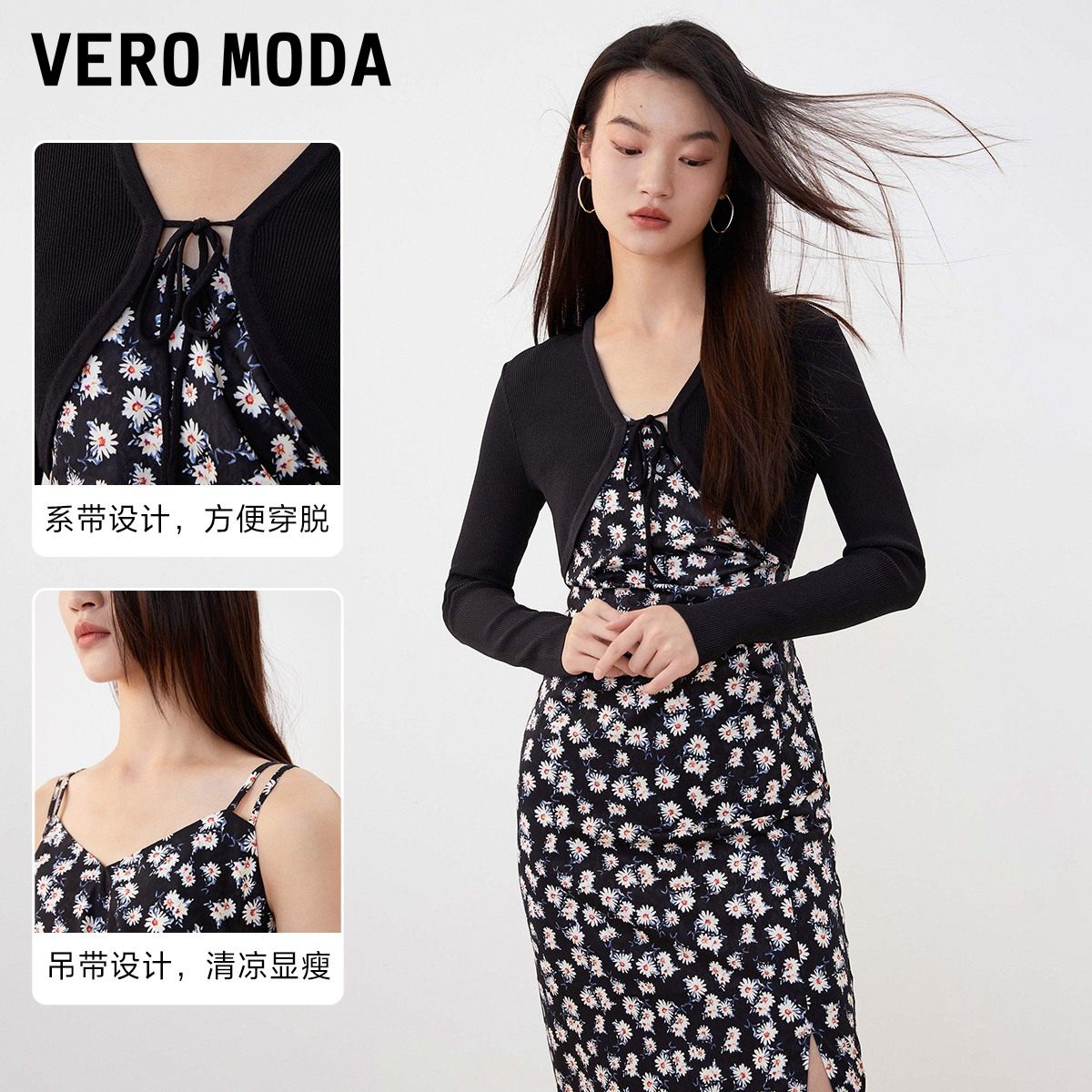 Vero Moda奥莱连衣裙针织衫套装秋季新款雪纺印花职业吊带裙子