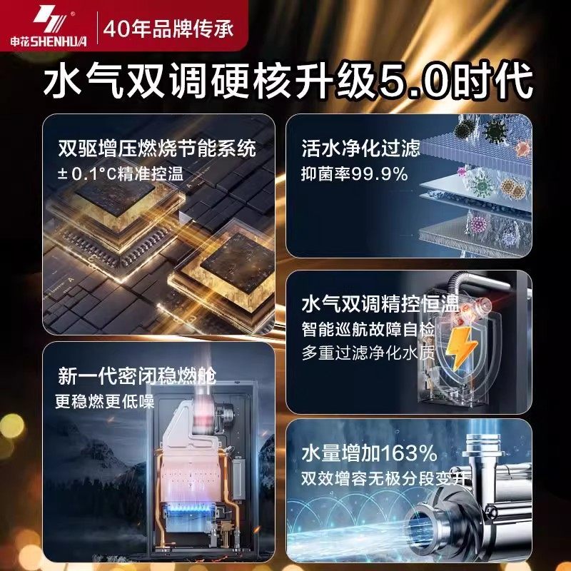 申花燃气热水器家用天然气增压平衡式液化气浴室洗澡强排恒温厨房
