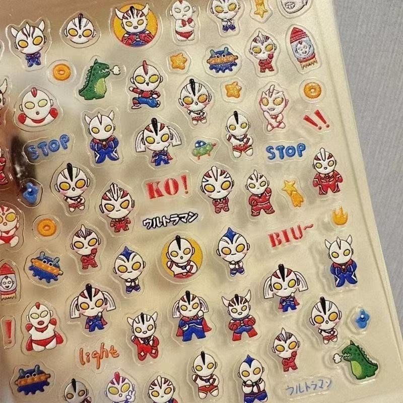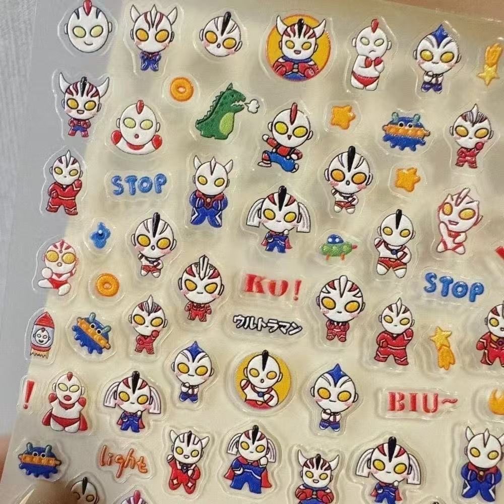 迪迦奥特曼小怪兽Q版超人浮雕立体美甲指甲贴纸背胶手账素材贴