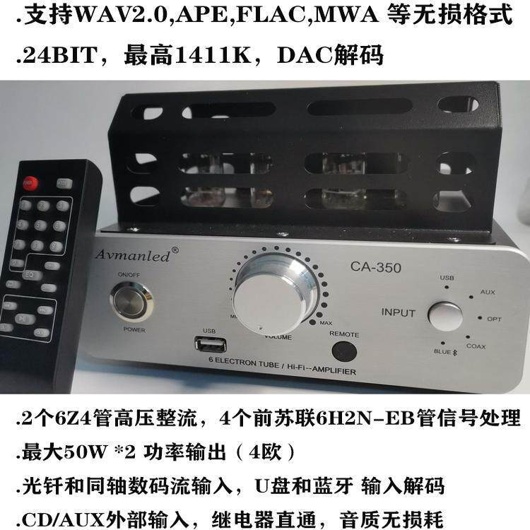 HIFI胆机6管6H2N功放机U盘蓝牙光纤同轴解码APP控制5寸书架箱套装