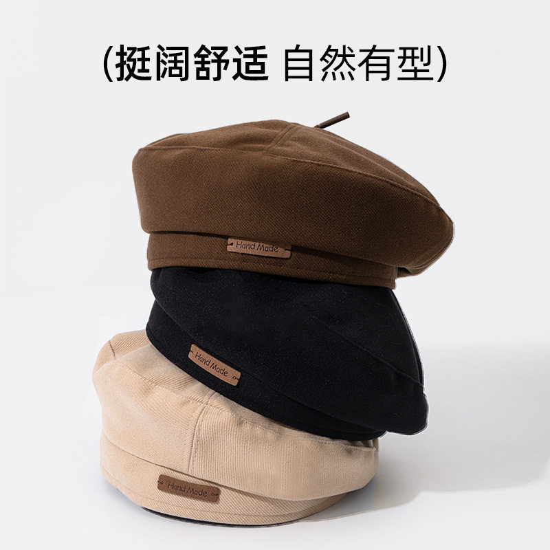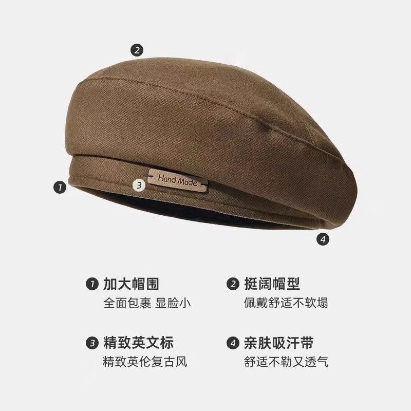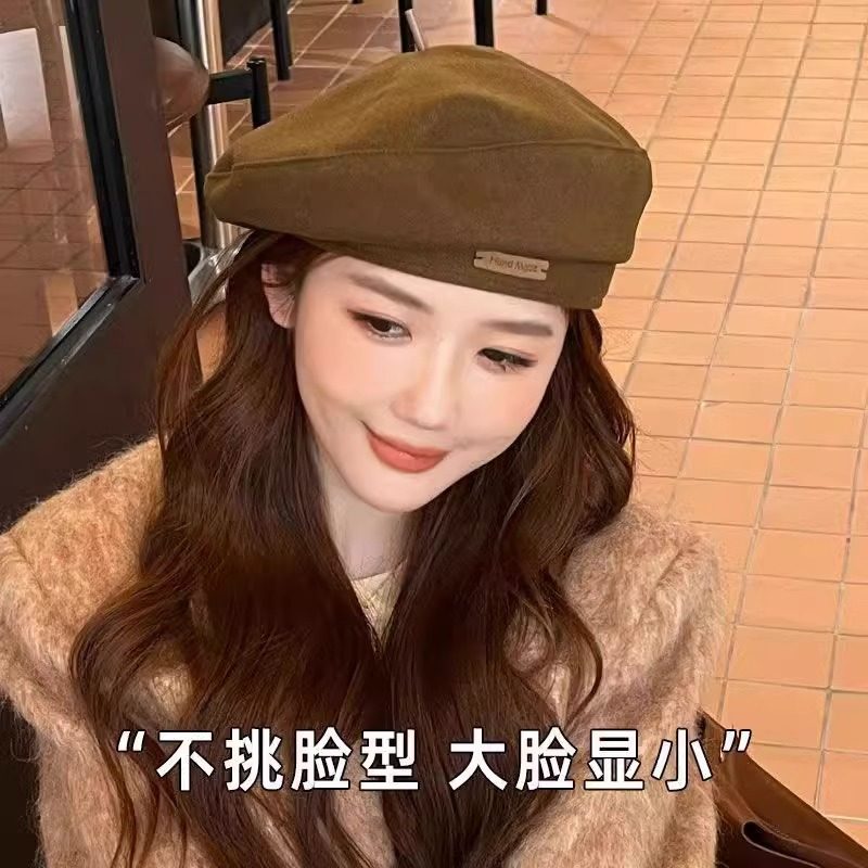 贝雷帽女秋冬2025新款高级感显脸小画家帽大头围八角帽子咖色圆脸