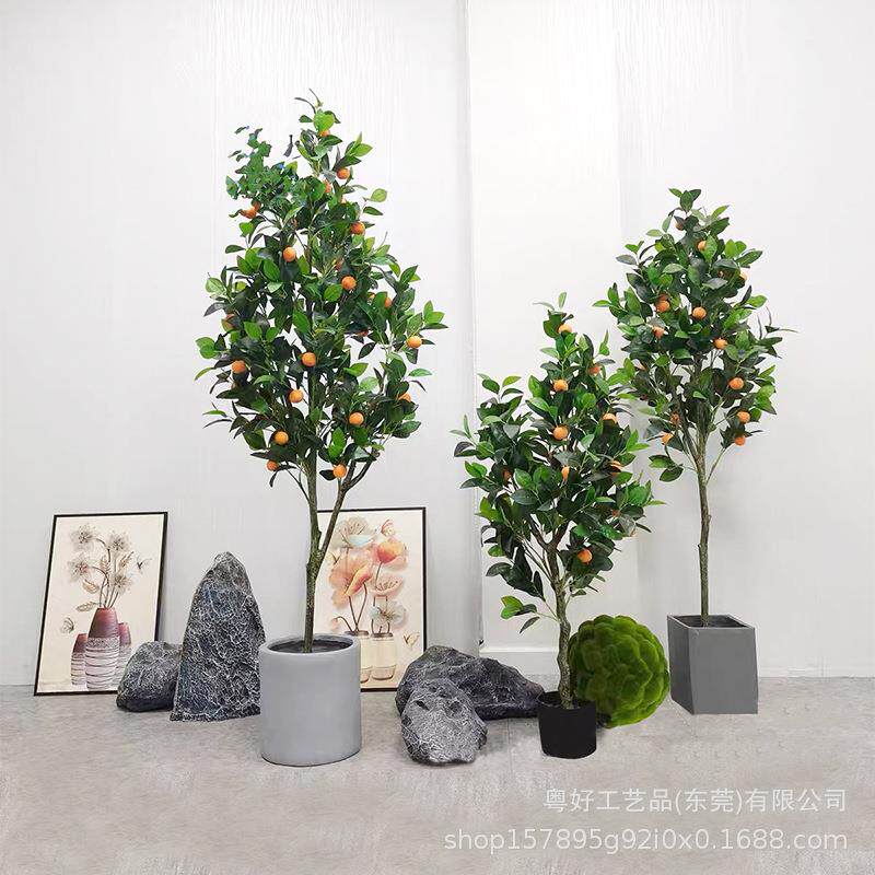 仿真桔子树落地摆放小盆栽景观人造塑料绿植物假柠檬仿真树橘子树