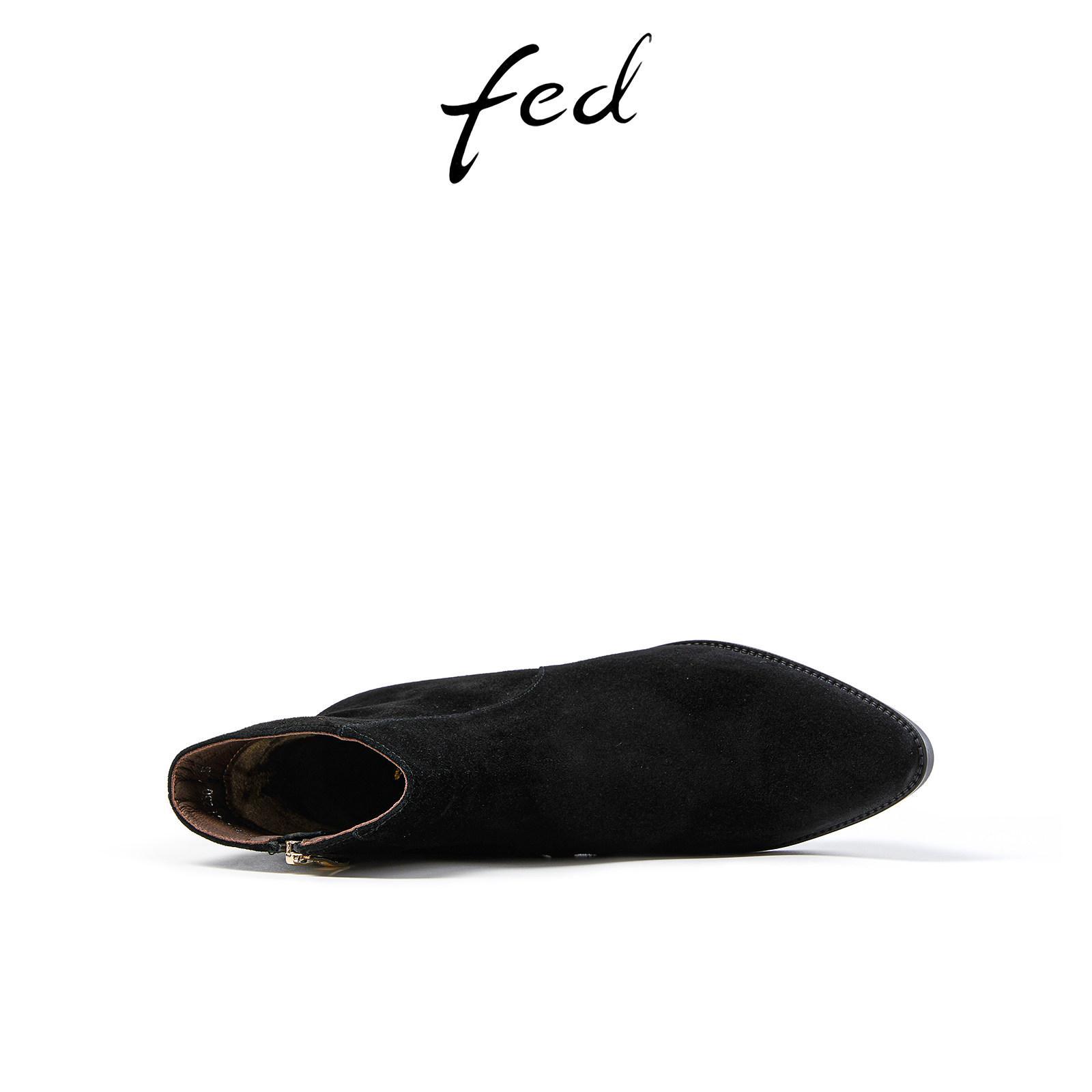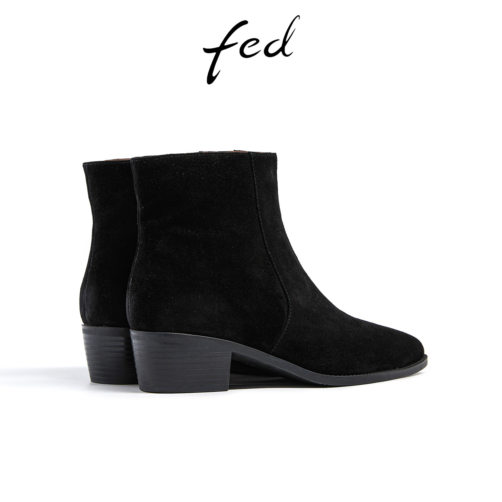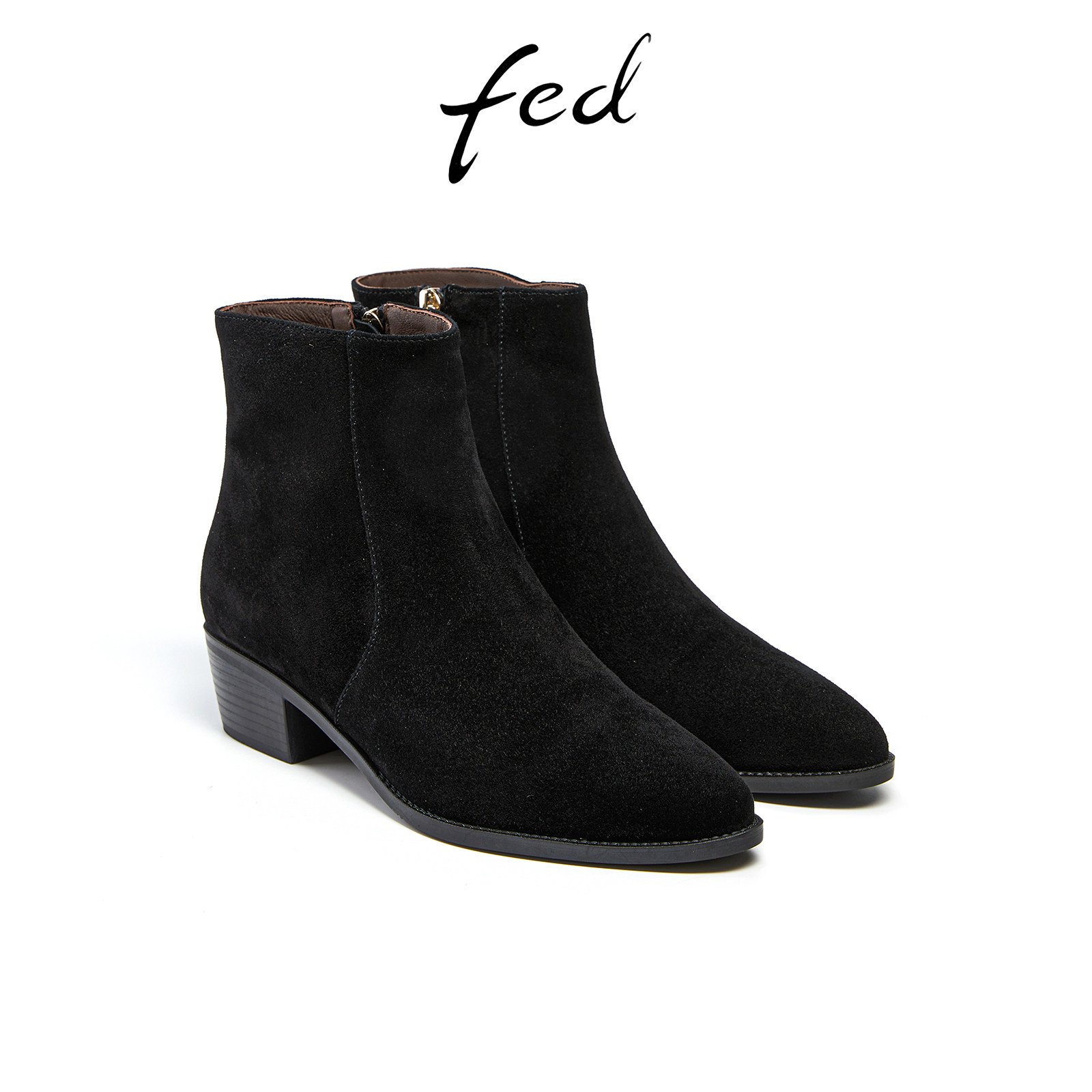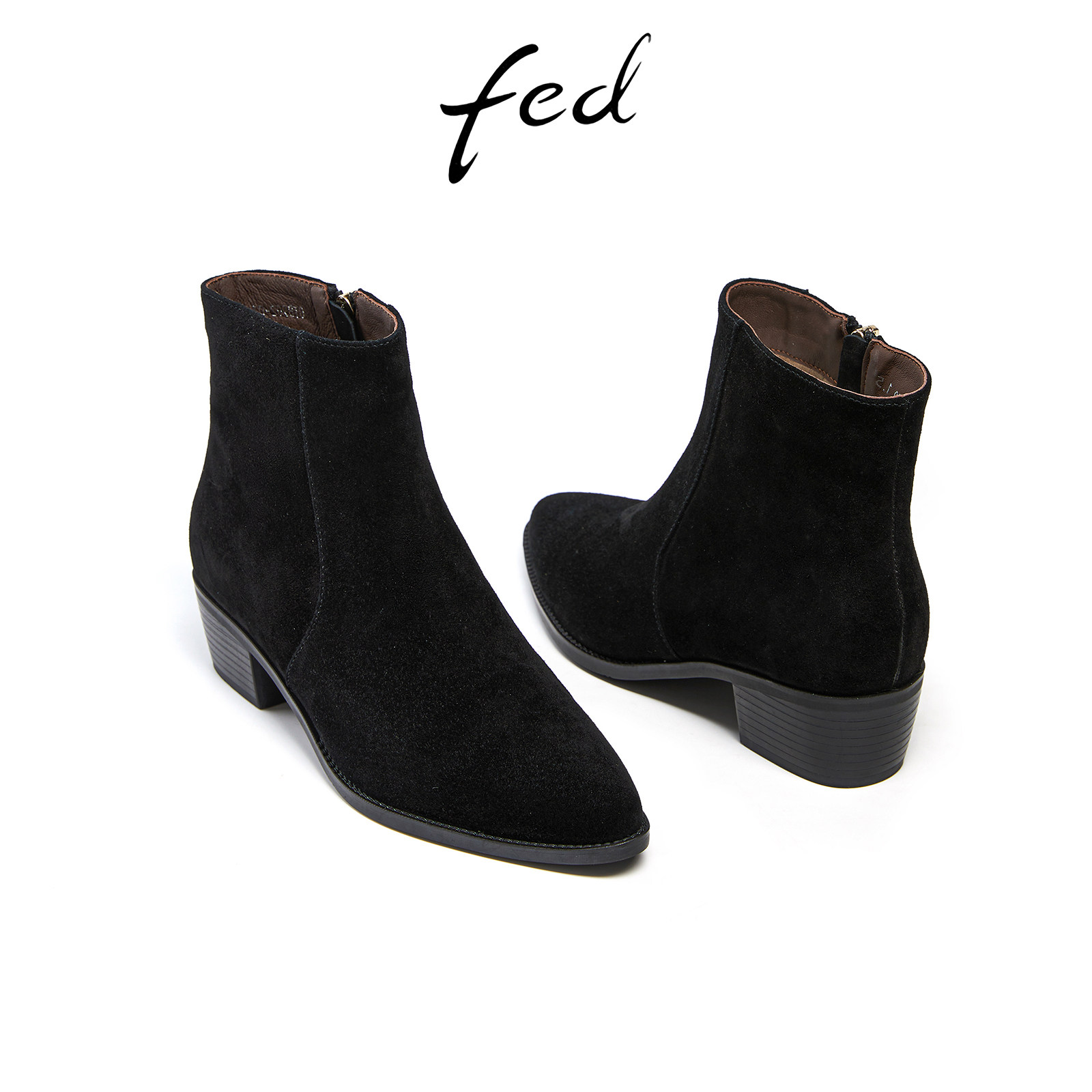 fed尖头时装靴冬季新款靴子气质粗跟小短靴瘦瘦靴女款R1004-ZF902