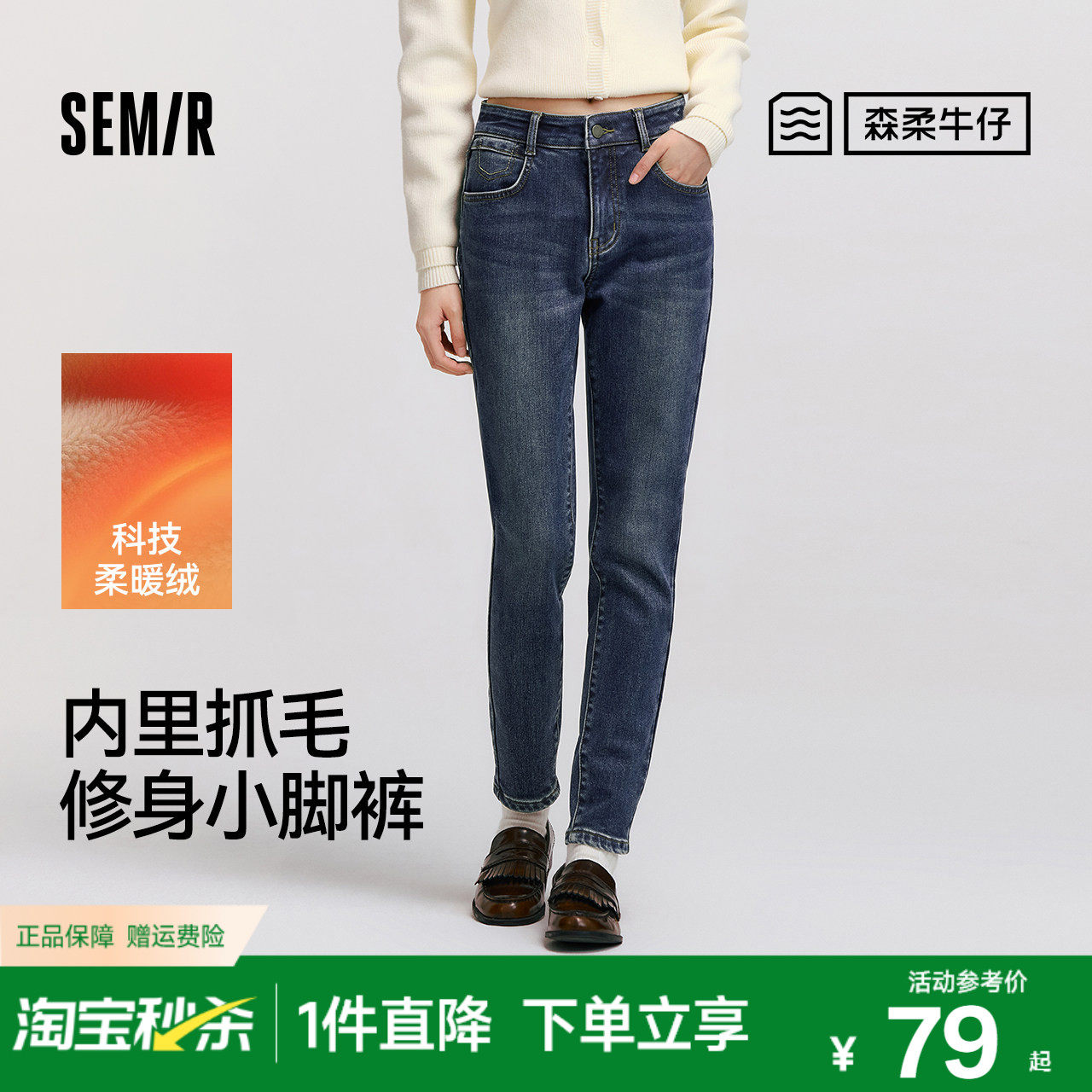 森柔|森马牛仔裤女冬季修身抓毛小脚裤显瘦舒适韩版休闲潮流长裤