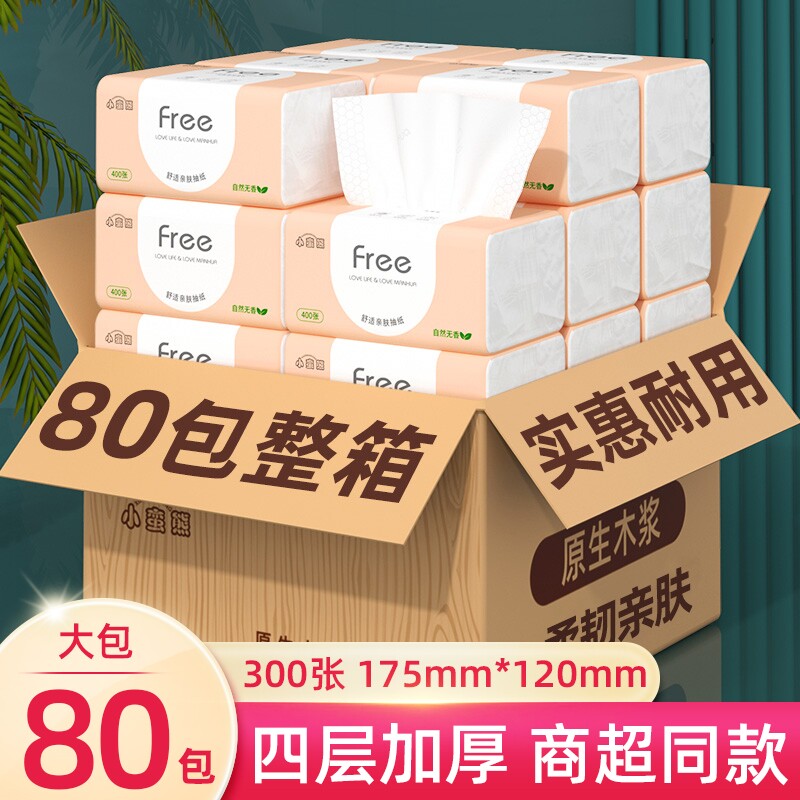原生木浆80包抽纸家用实惠装整箱批发餐巾纸面巾纸抽擦纸卫生纸