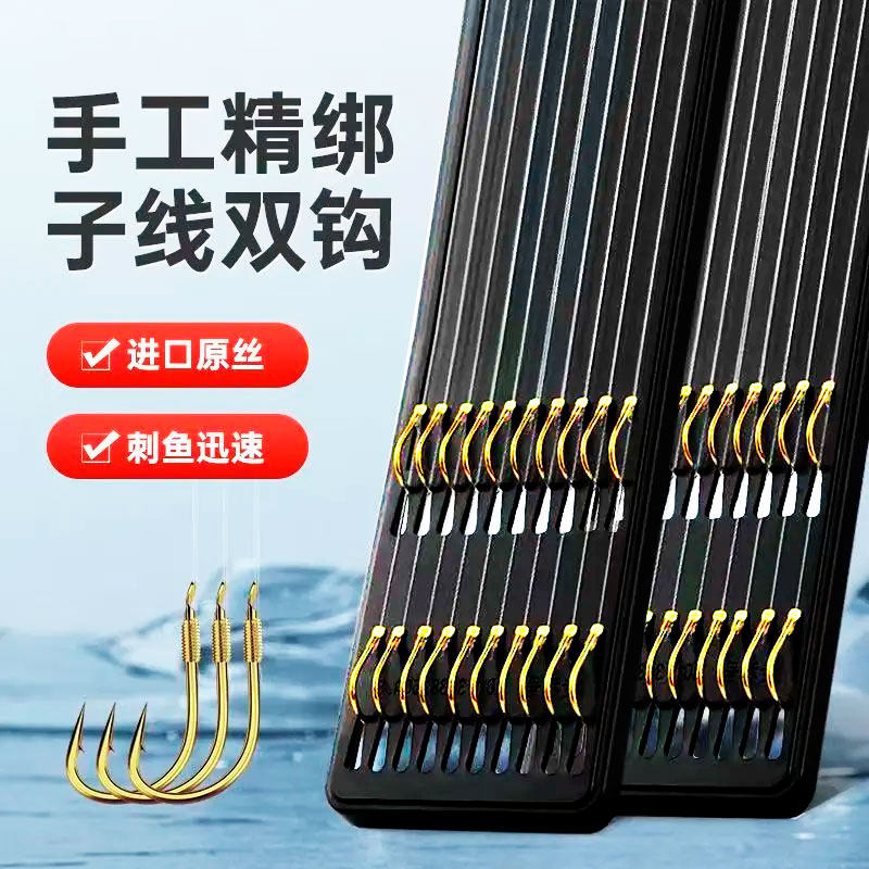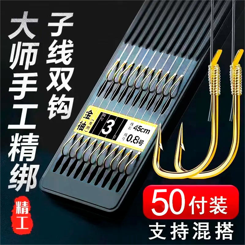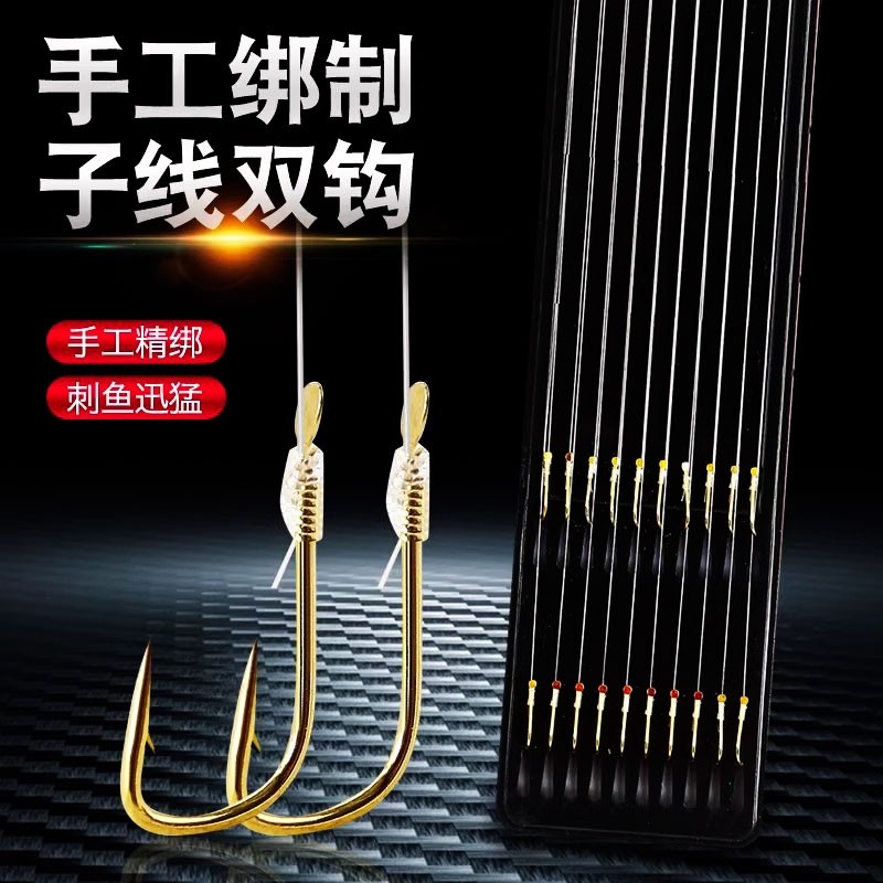金袖鱼钩鱼线绑好鱼钩套装全套子线双钩成品组合防缠鲫鱼钩钓鱼