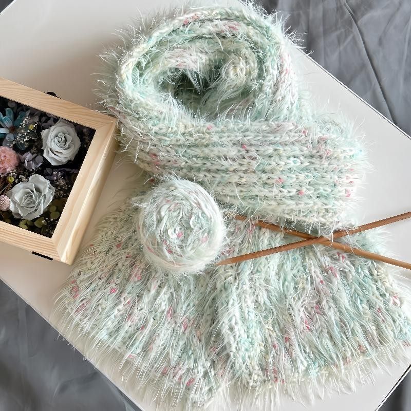手工diy自制长绒毛手混线送闺蜜围巾编织diy棒针神器冬季紫色格子