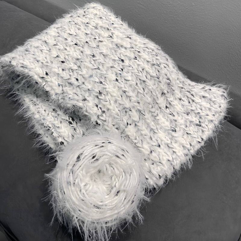 雪花双面针织围巾女秋冬季韩系氛围感加厚保暖高级感围脖复古披肩