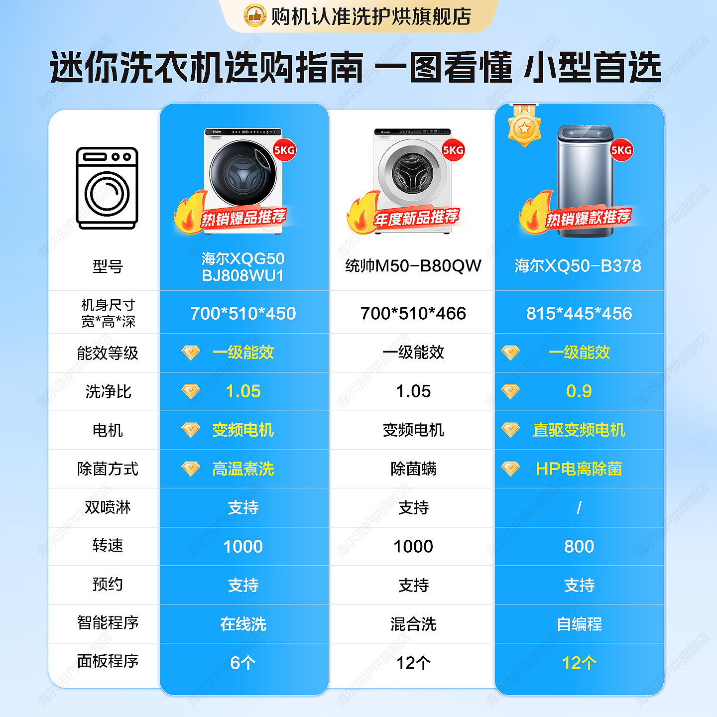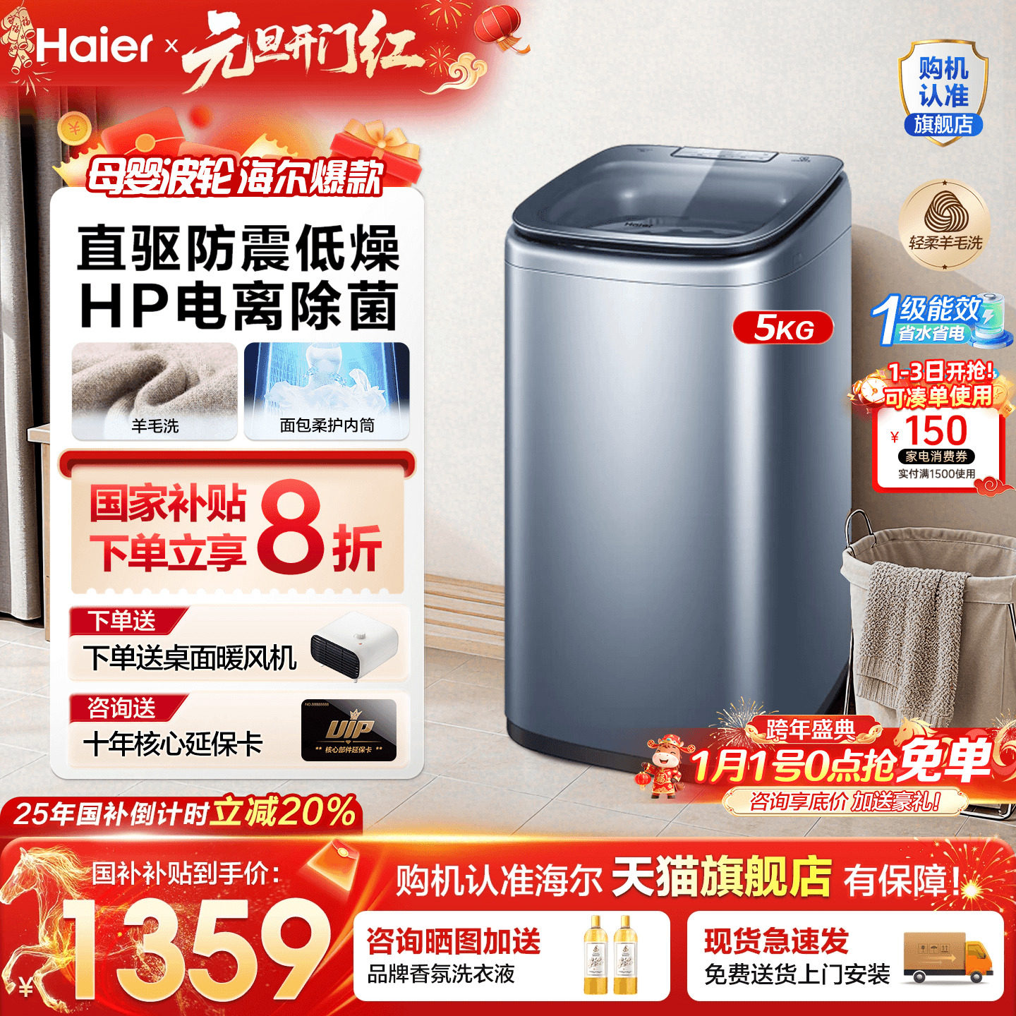 海尔迷你波轮洗衣机小型5KG家用全自动直驱儿童婴儿内衣内裤除菌
