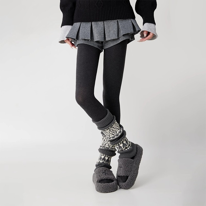 复古费尔岛堆堆袜套秋冬加厚保暖灰色腿套羊毛袜子2025新款爆款冬