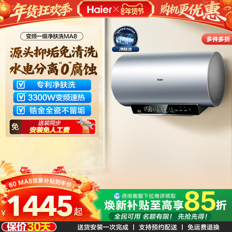 [焕新补贴]海尔电热水器官方家用洗澡小型变频一级净肤洗MA8