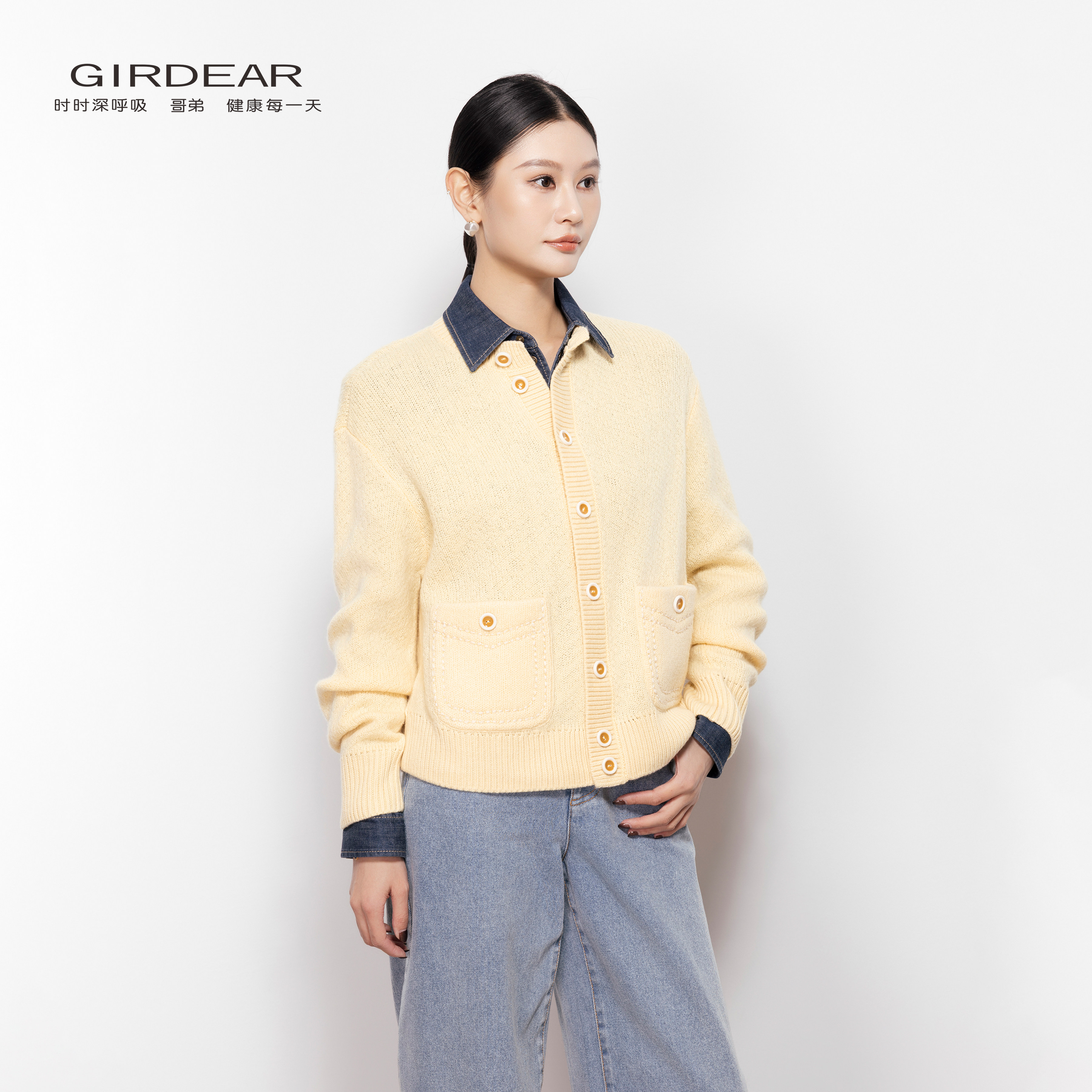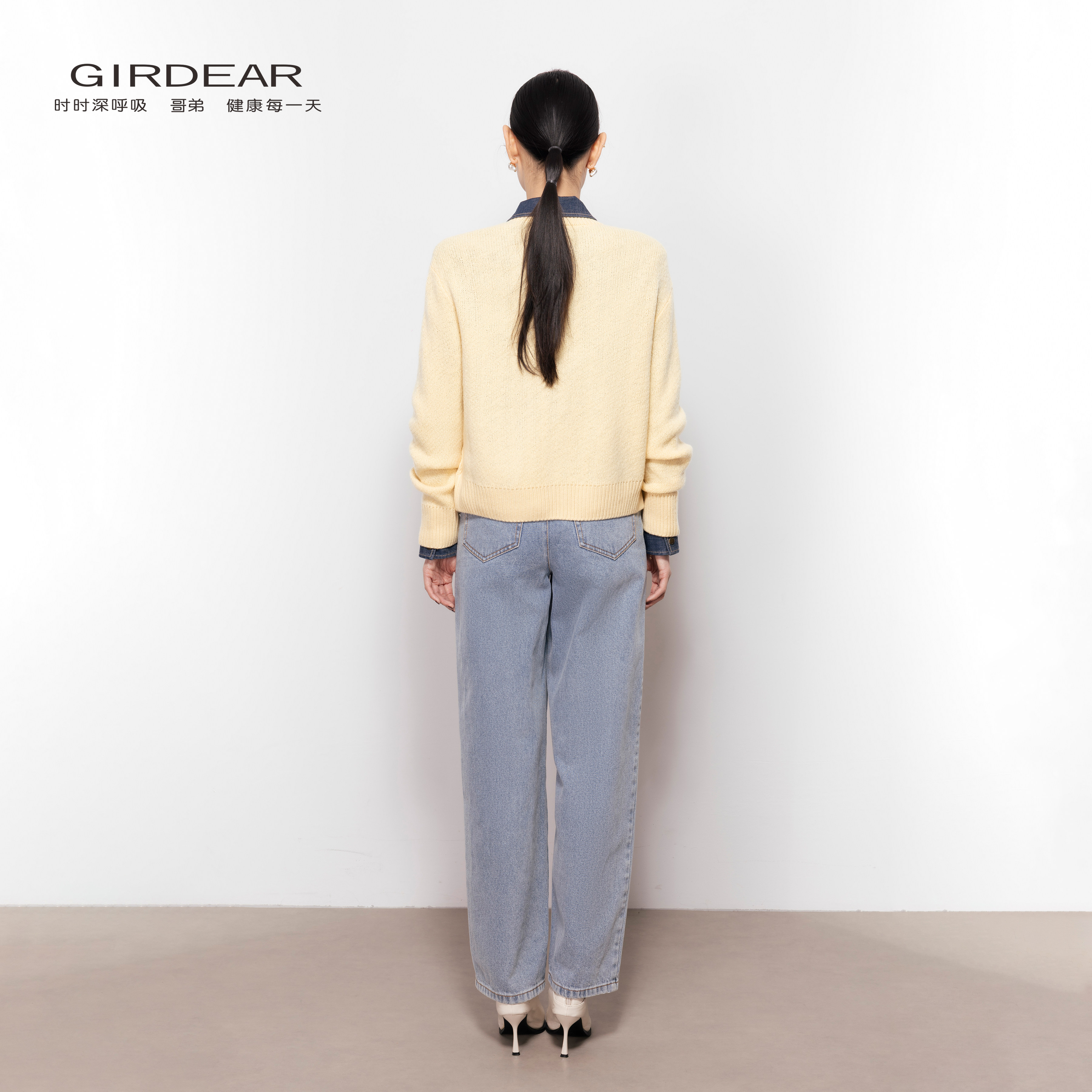 Girdear/哥弟新款【山羊绒100%】时尚百搭长袖毛衣针织开衫148060