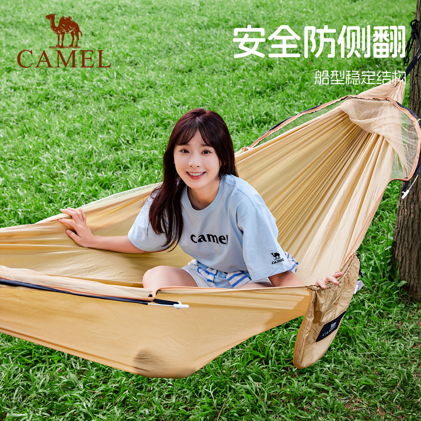 骆驼户外防蚊吊床成人加厚防侧翻悬挂式摇篮秋千空中帐篷露营蚊帐
