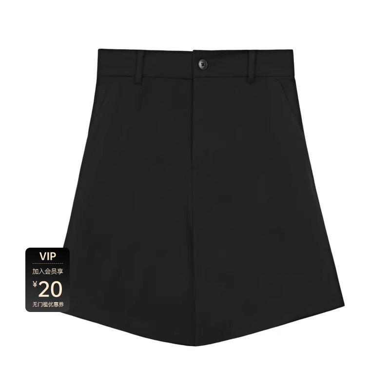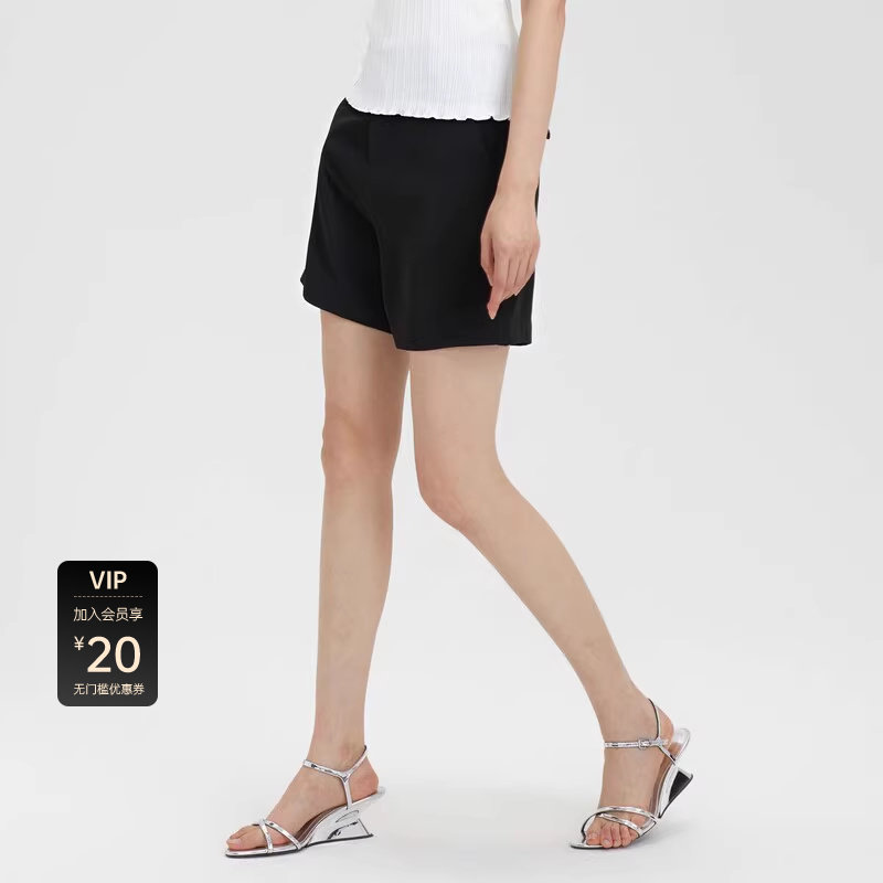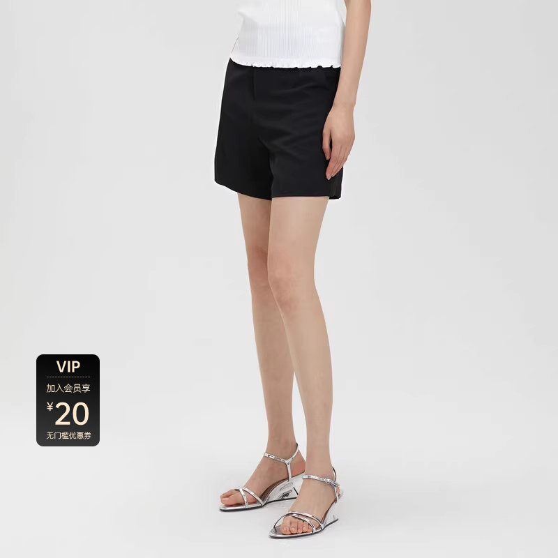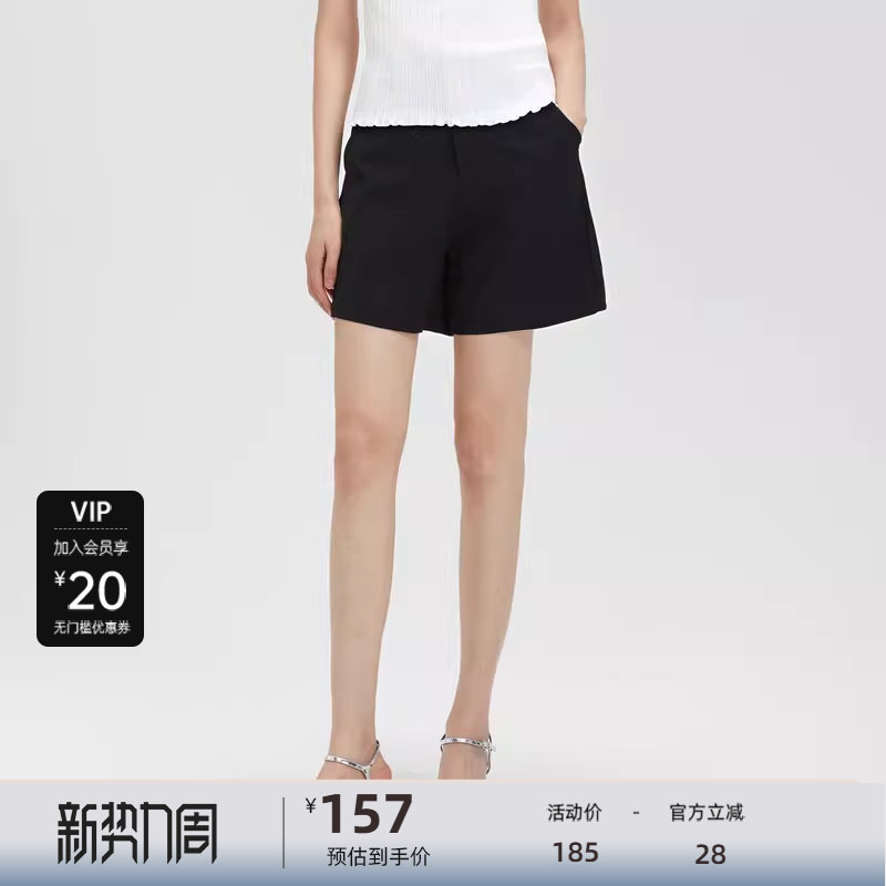 sdeer圣迪奥女装松紧拼接插袋黑色A字短裤S23280901