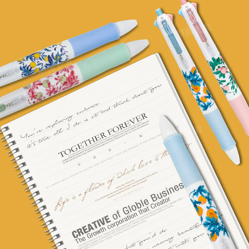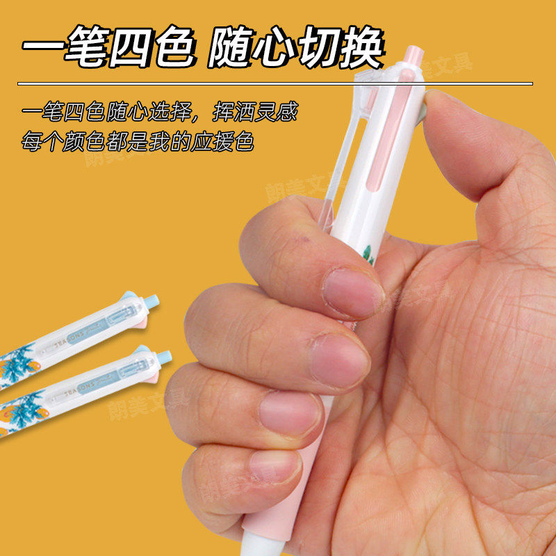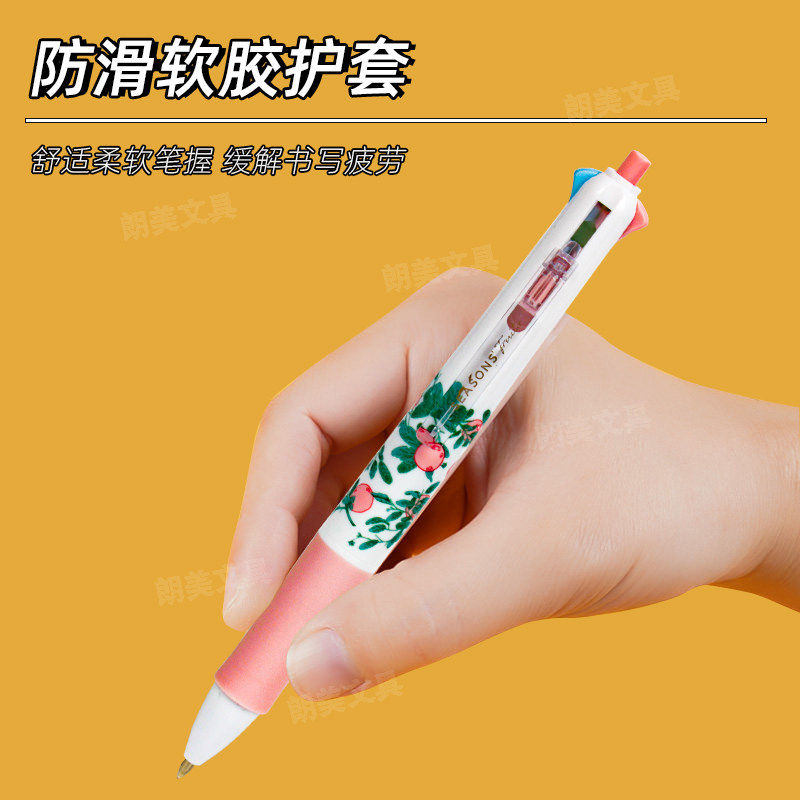 晨光果物图鉴按动四色中油笔黑蓝红绿学生0.5圆珠子弹头ABP803B8