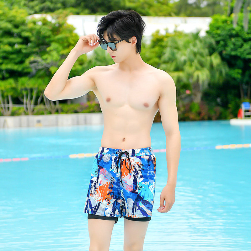 维动星际游泳短裤男游泳装备防尴尬抗氯泳裤健身训练双层沙滩裤夏
